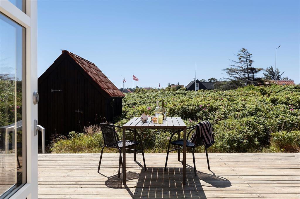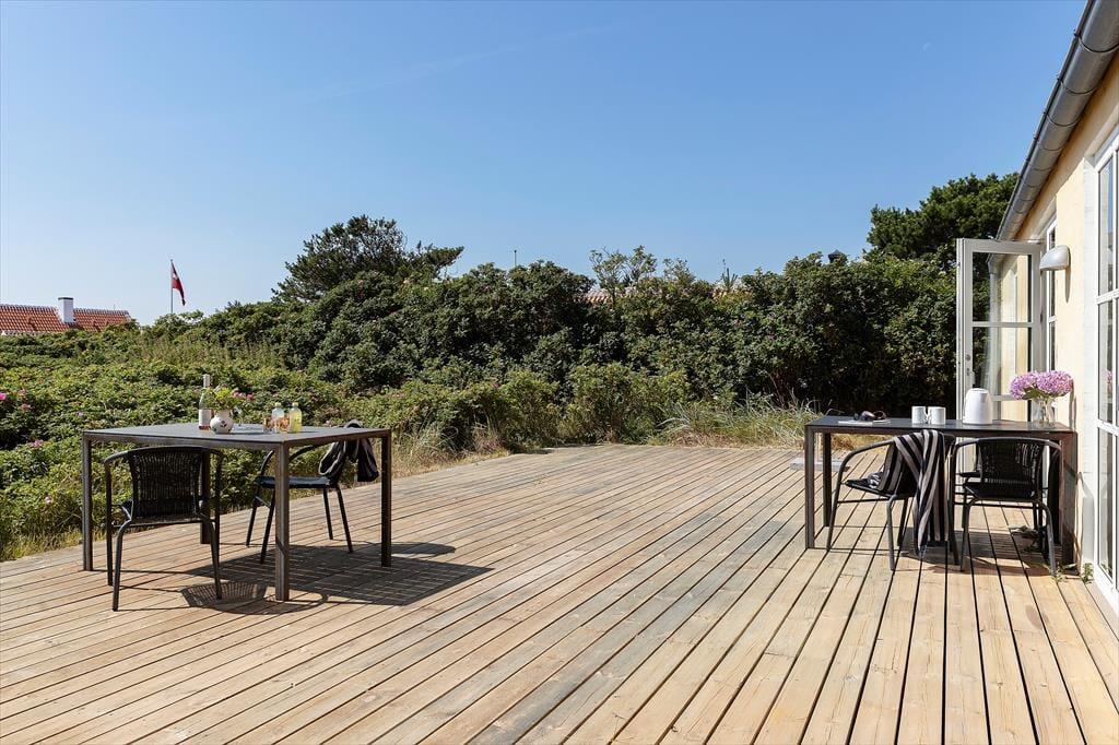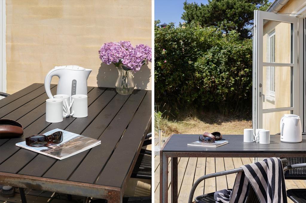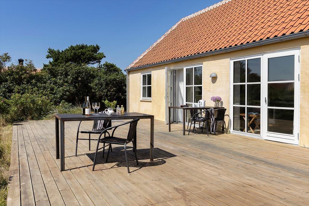 Træd ud på den sydøstvendte terrasse og mærk, hvordan solens varme allerede fra morgenstunden luner dig, mens du nyder dagens første kop kaffe. Den store naturgrund skaber fredelige rammer omkring huset, og her får du rig mulighed for at koble helt af – om det er med en bog i solstolen, grillmad under åben himmel eller bare med udsigten over den vilde, nordjyske natur. Terrassen indbyder til lange frokoster i skyggen og afslappende stunder i solen, mens børnene trygt kan lege i det grønne. Når aftenen nærmer sig, og vinden blidt suser i de omkringliggende buske, kan du lade dagens sidste solstråler varme dine kinder, mens du lytter til lydene fra havet, der aldrig er langt væk. Udelivet her er ikke kun et tillæg – det er en central del af ferieoplevelsen, og med Gl. Skagens særlige lys og atmosfære får du minder for livet under åben himmel.