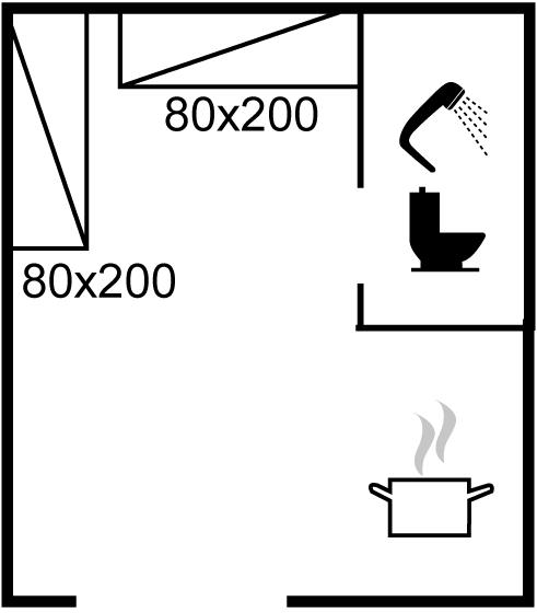 Sovepladserne fordeler sig på: 2 sovepladser i enkeltsenge.