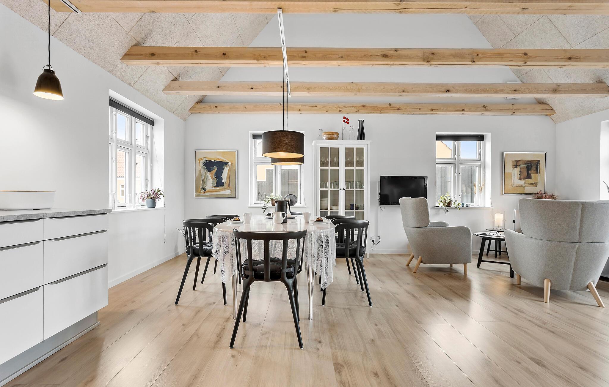 Velkommen til et dejligt område i Lille Skagen, hvor I kan se frem til en ferie med ro og komfort. Træd ind i det klassiske gule skagenhus og nyd de indbydende, lyse lokaler, som fordeler sig over to etager. Her er der alt, hvad I behøver til jeres feriedage. Byhusene ligger tæt på hinanden, men alligevel har I det helt for jer selv i den afskærmede gårdhave. Her får I jeres egen lille "gryde" til solskinsdagene, hvor I kan sætte jer med en kop kaffe og en god bog. Der er direkte adgang til terrasserne fra det hyggelige anneks og den lyse stue. Her kan I nyde freden og roen, husets moderne løsninger og det veludførte design. Bil er ikke nødvendigt, for I har kort gåafstand til det meste.