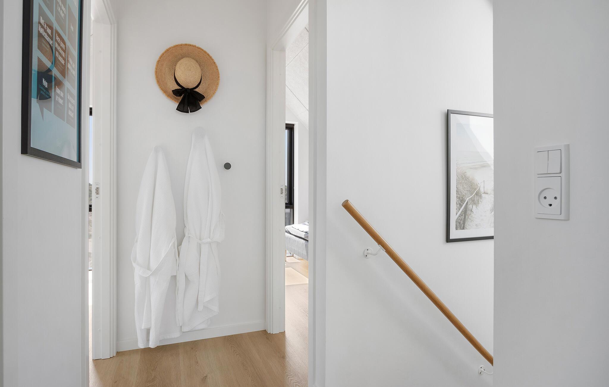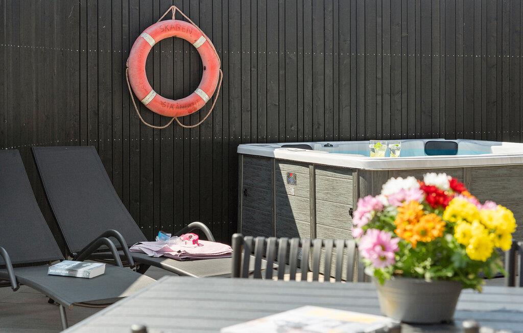 Jeres stilfuldt indrettede hus tilbyder en vidunderlig udsigt over havet fra øverste etage. Terrasserne har lidt forskelligt at byde på. På en af terrasserne kan I slappe af i spabadet, mens den anden terrasse giver en malerisk udsigt over den omkringliggende natur og det nærliggende hav. Nyd rolige timer udendørs, hvad enten det er med solbadning, en spændende bog eller en hyggelig middag med familien.