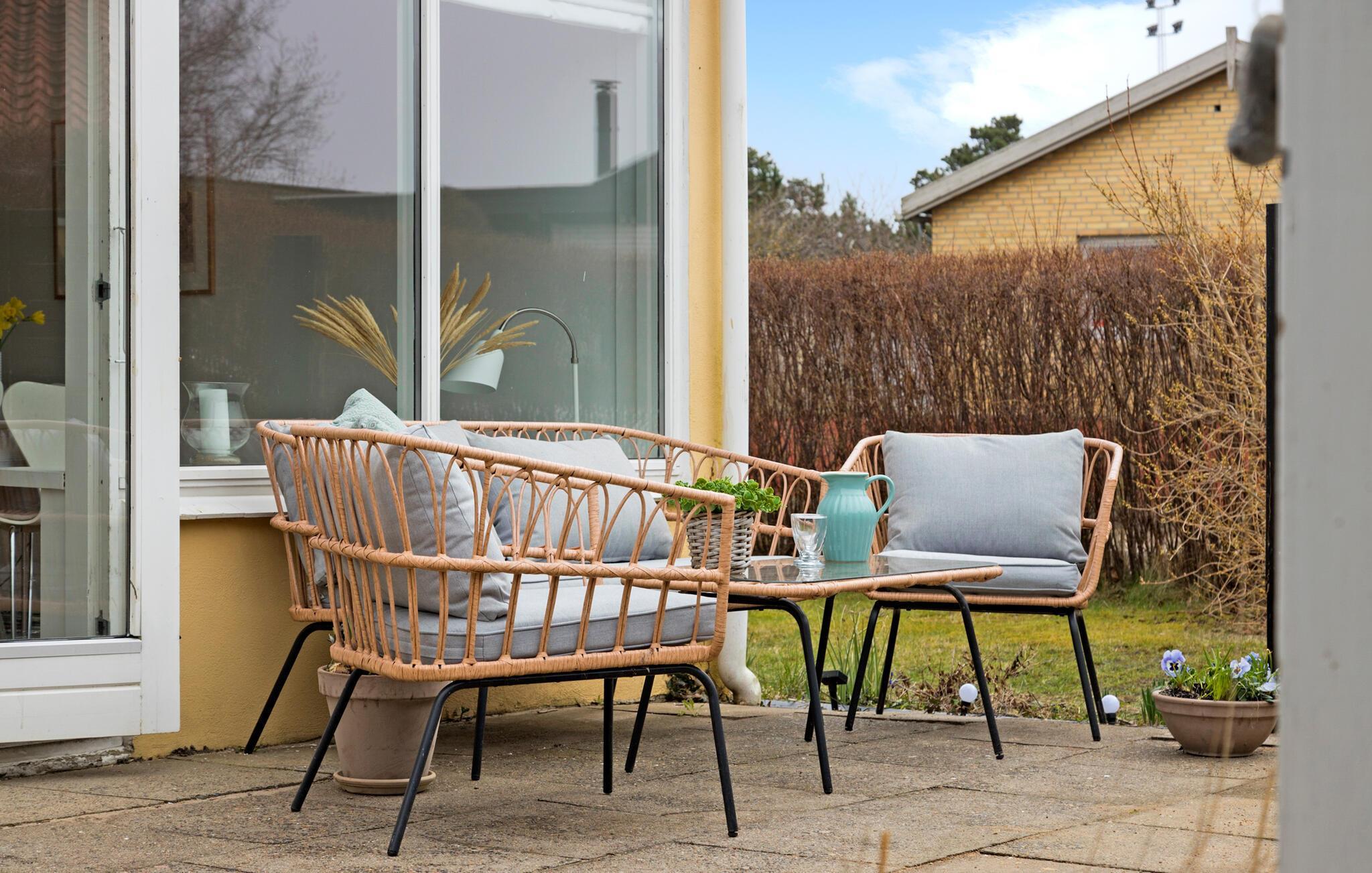 På de varme dage vil I nyde godt af de to terrasseområder, hvor I kan finde sol, skygge og læ efter behov i løbet af dagen. Begynd dagen her i ro og mag med en kop kaffe i den blide morgensol, mens I lægger planer for dagens udflugter.