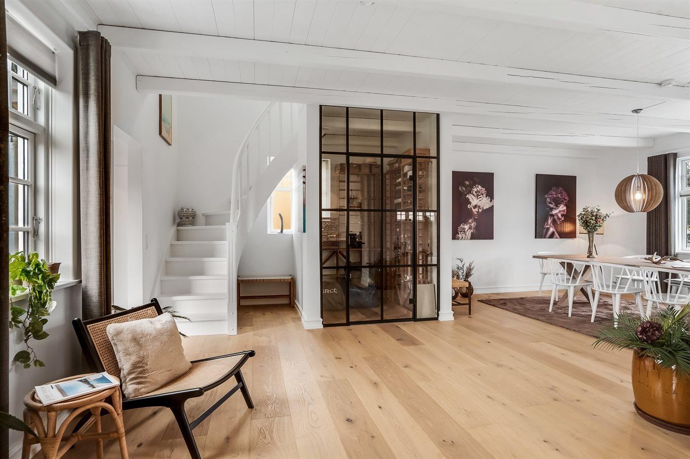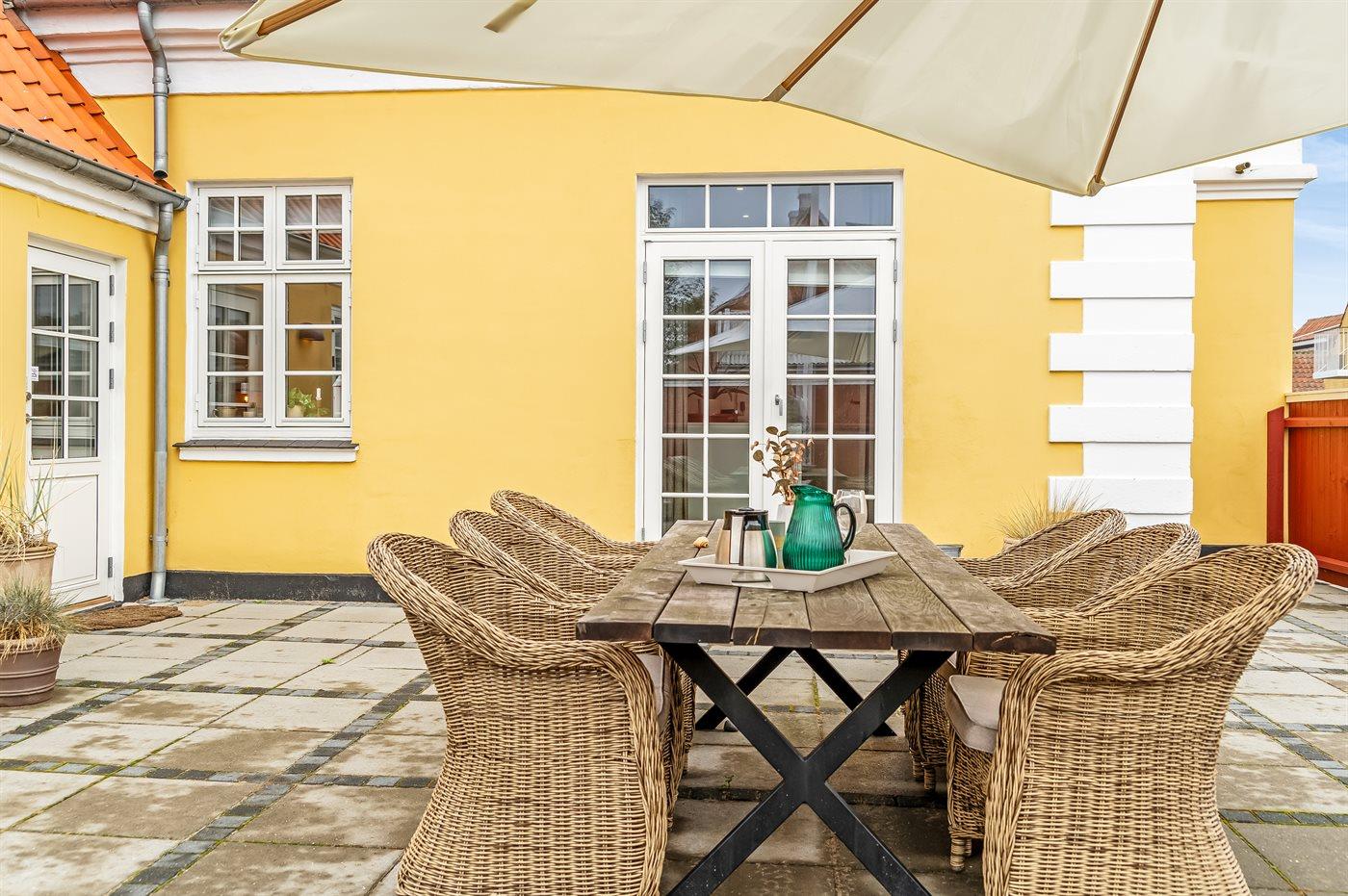 Feriehuset, der er på 150 m2 fordelt over to etager, har masser af plads. Det rummelige køkken/alrum er husets hjerte med et stort spisebord, perfekt til fælles måltider og et glas vin. Midt i stuen er der et flot vinskab, som sætter prikken over i’et. Det moderne køkken har alle nødvendige faciliteter og direkte udgang til den hyggelige gårdhave. Huset står blot og venter på gæster, der ønsker at nyde madlavning, afslapning og ferieidyl. Der er et badeværelse på hver etage, og hele huset emmer af lys og venlig atmosfære, som gør det nemt at føle sig hjemme. Huset blev gennemrenoveret i foråret 2022 og fremstår derfor i flot stand og klar til at danne rammen om din næste ferie.