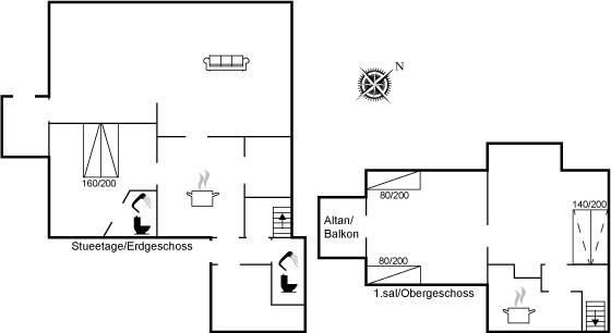Der er i alt 2 soveværelser. Sovepladserne fordeler sig på: 2 sovepladser i dobbeltseng. 2 sovepladser i enkeltsenge. 2 sovepladser i sovesofa (dobbelt). 2 af disse sovepladser befinder sig i stuen.