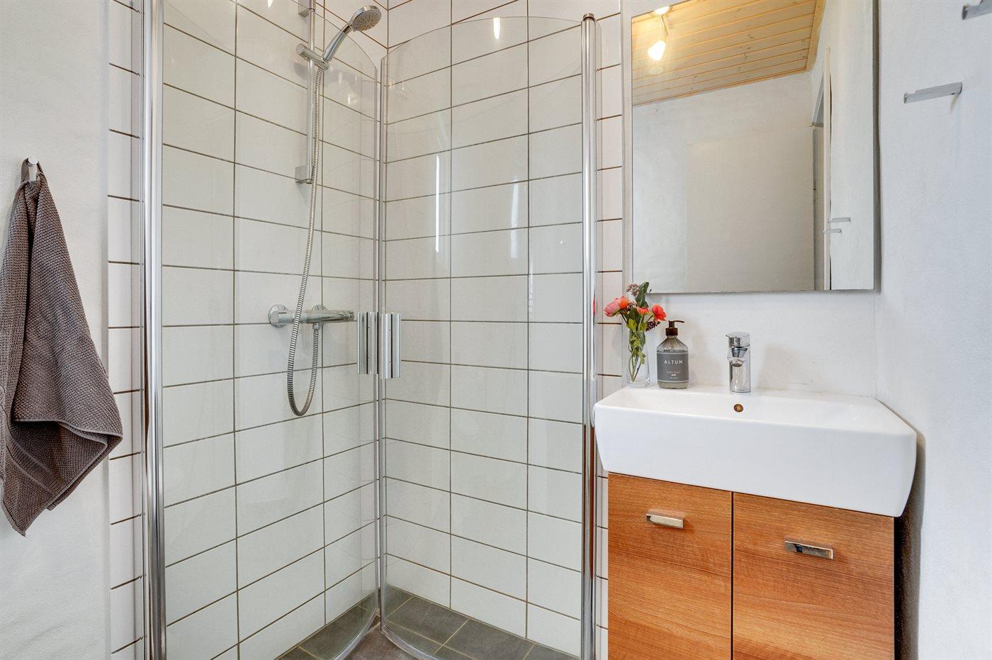 Der er 1 badeværelse med bruseniche og 1 toilet.