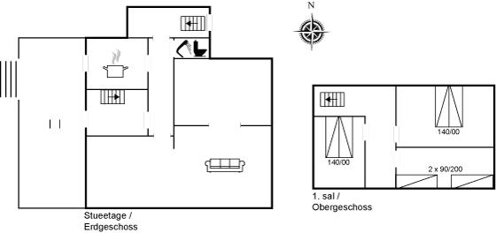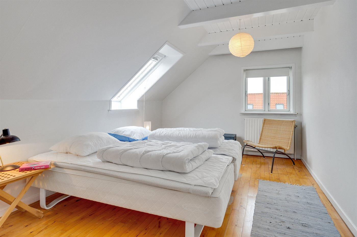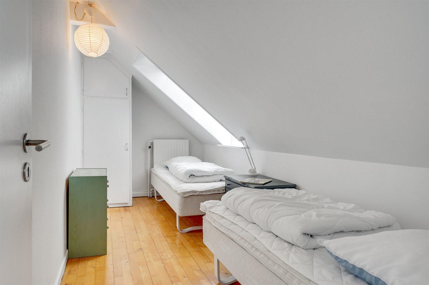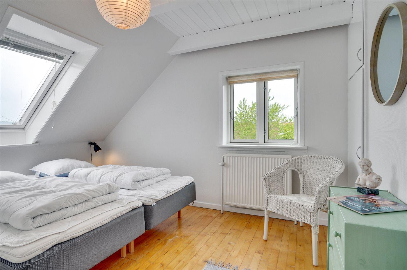 Der er i alt 3 soveværelser. Sovepladserne fordeler sig på: 4 sovepladser i dobbeltsenge. 2 sovepladser i enkeltsenge.