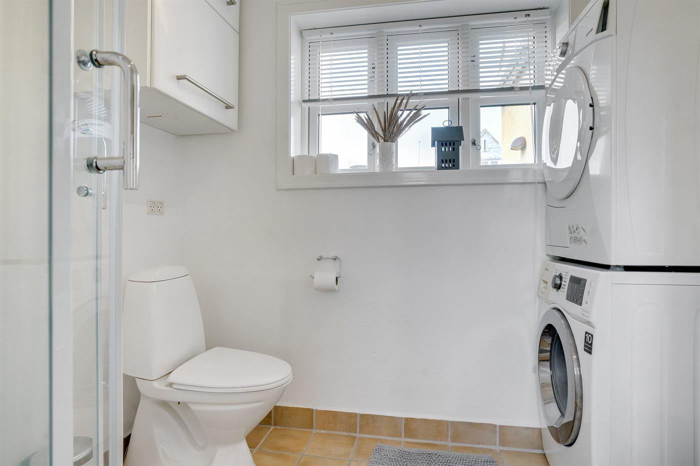 Der er 2 badeværelser med bruseniche og 2 toiletter. Der er gulvvarme på 2 badeværelser.
