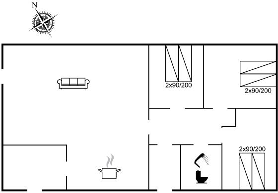 Der er i alt 3 soveværelser. Sovepladserne fordeler sig på: 6 sovepladser i dobbeltsenge.