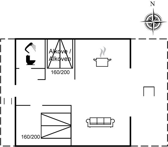 Der er i alt 1 soveværelse. Sovepladserne fordeler sig på: 2 sovepladser i dobbeltseng. 2 sovepladser i alkove.