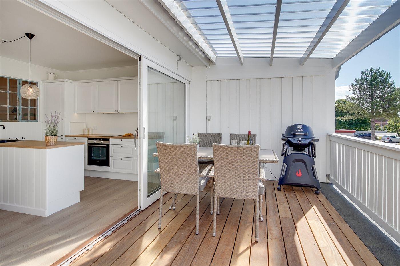 Moderne ferielejlighed i Skagen med terrasse, tæt på skov og byens attraktioner.