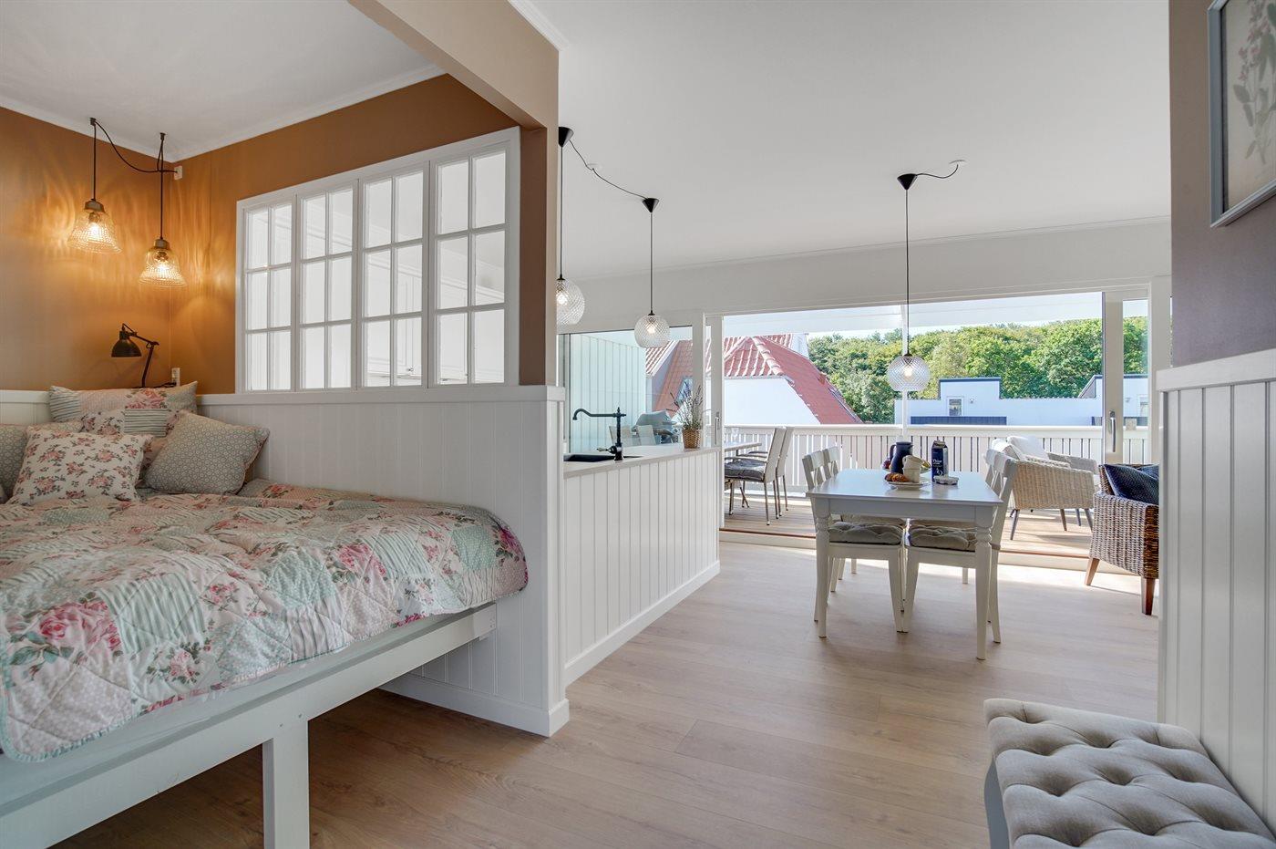 En skøn ferielejlighed beliggende i Skagen by lige op til skov og tæt på byens mange attraktioner og seværdigheder. Huset er indrettet med en alkove i opholdsstuen, hvor 2 af sovepladserne befinder sig.