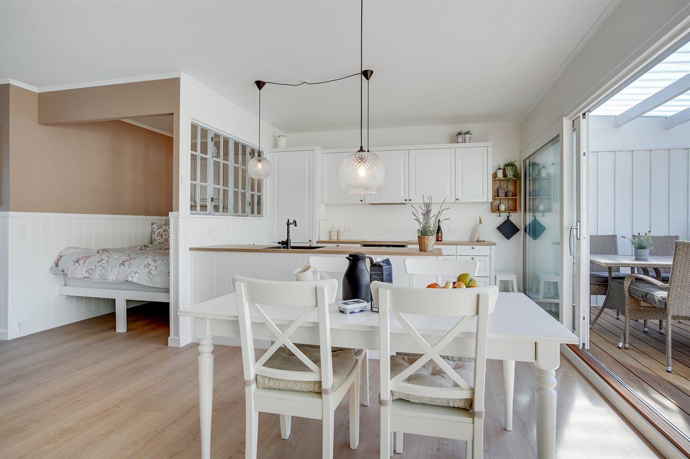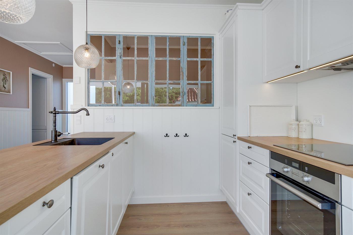 Køkkenet er udstyret med 1 køleskab. Der er 4 induktionskogeplader, varmluftovn, mikrobølgeovn samt opvaskemaskine.