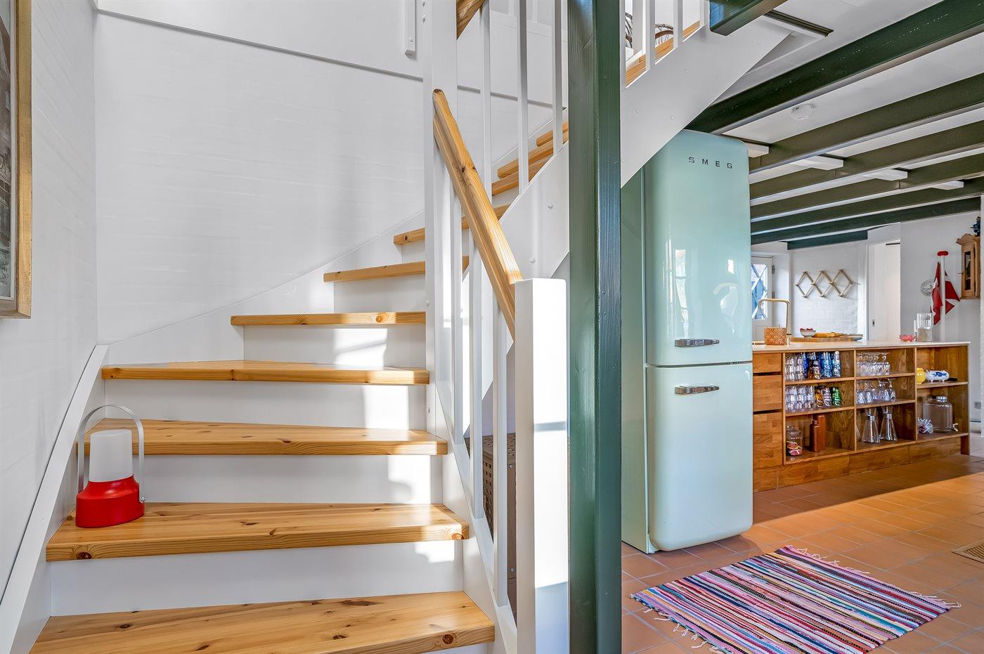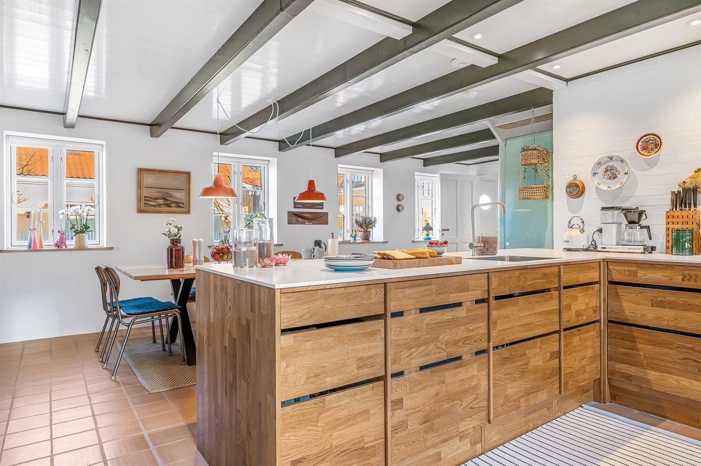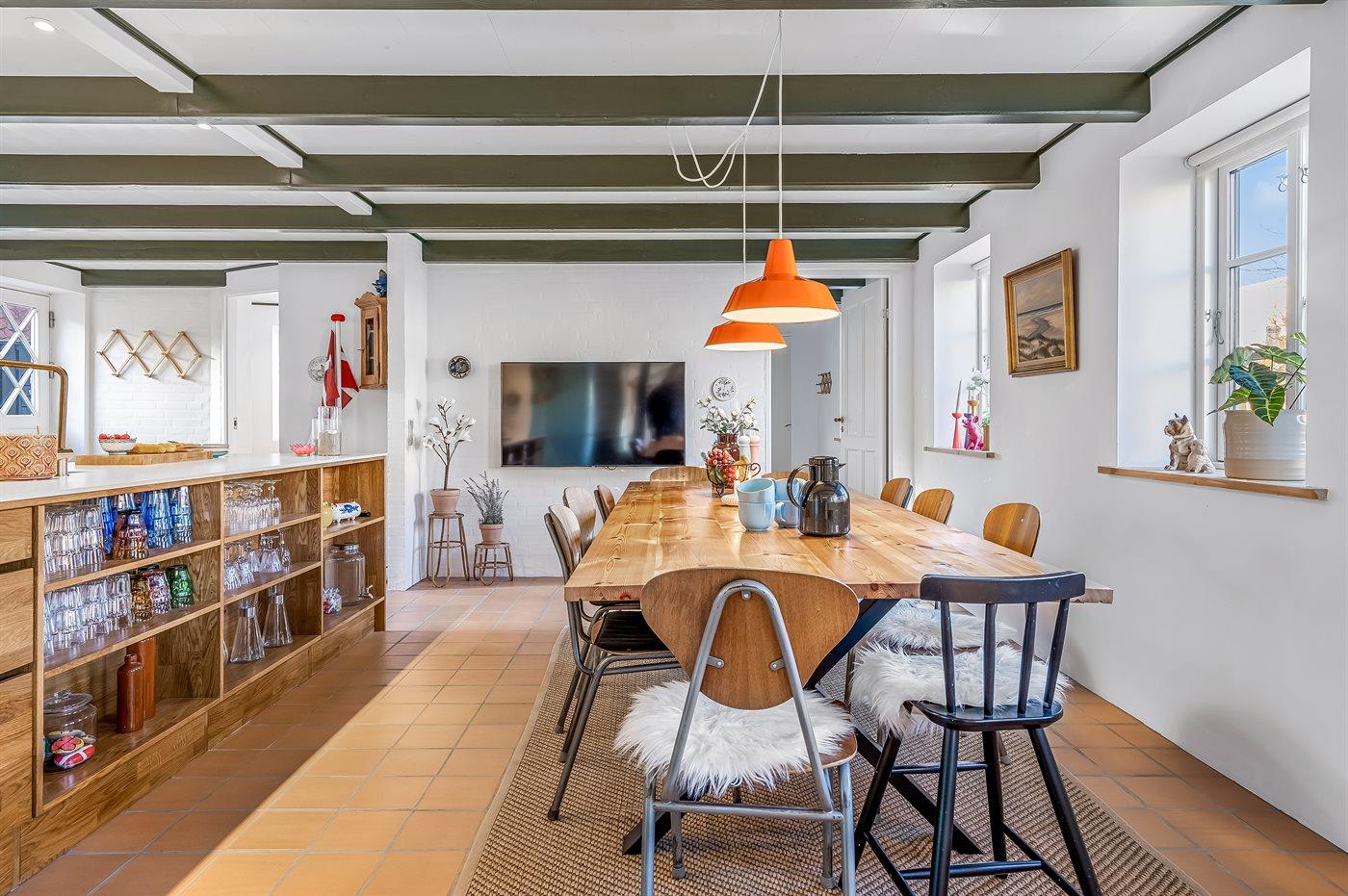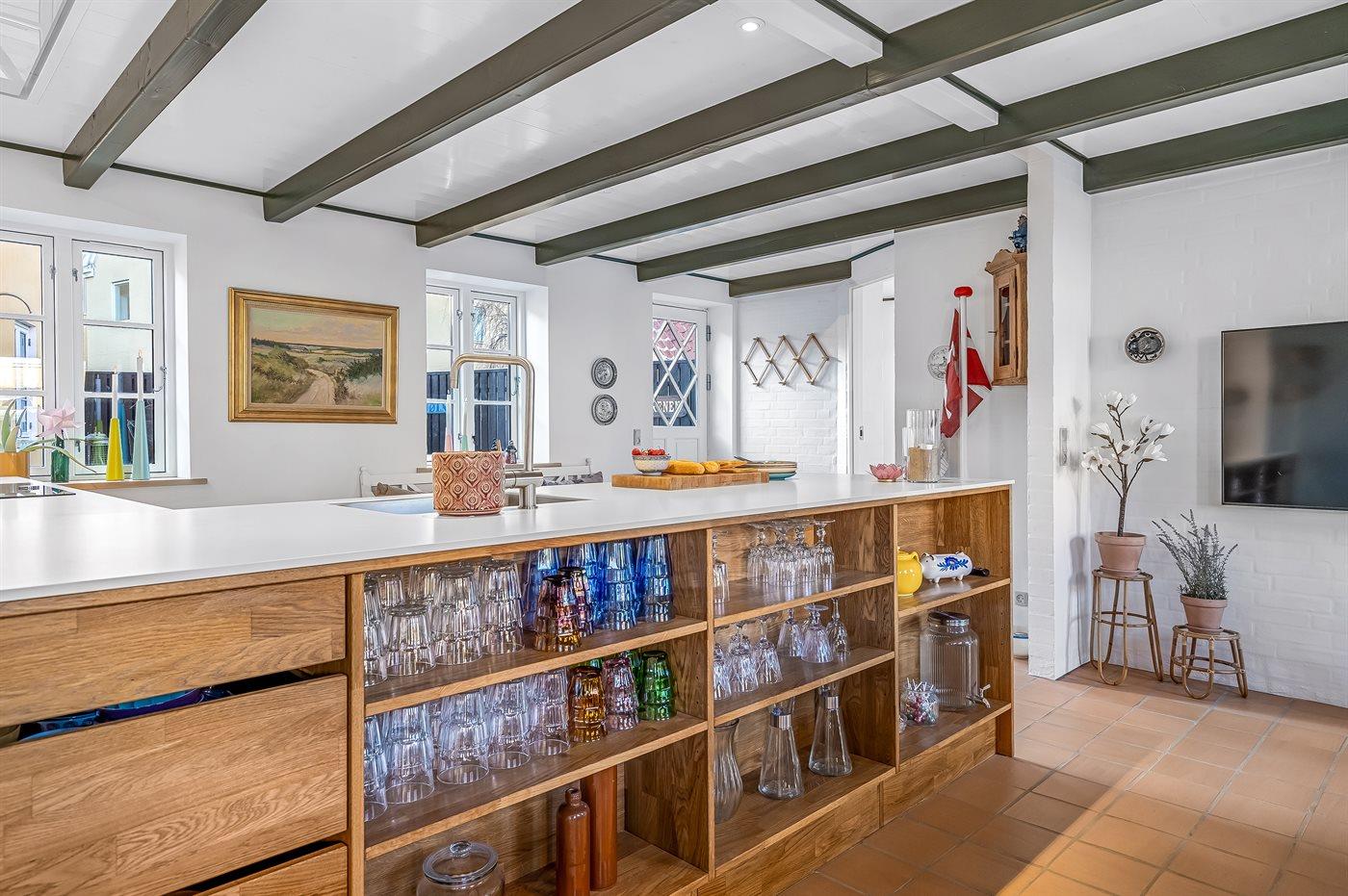 Køkkenet er udstyret med 1 køleskab. Der er 4 induktionskogeplader, varmluftovn, mikrobølgeovn samt opvaskemaskine.