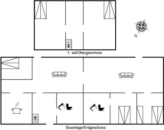 Der er i alt 5 soveværelser. Sovepladserne fordeler sig på: 10 sovepladser i dobbeltsenge. 1 soveplads i enkeltseng.