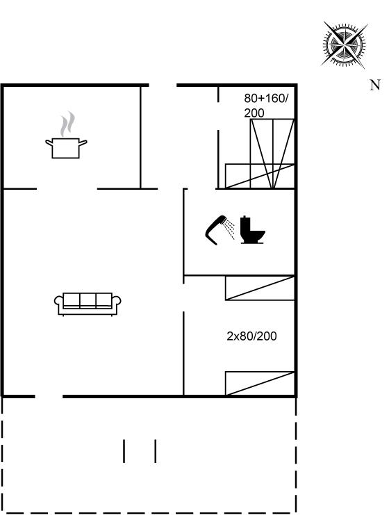 Der er i alt 2 soveværelser. Sovepladserne fordeler sig på: 2 sovepladser i dobbeltseng. 3 sovepladser i enkeltsenge.