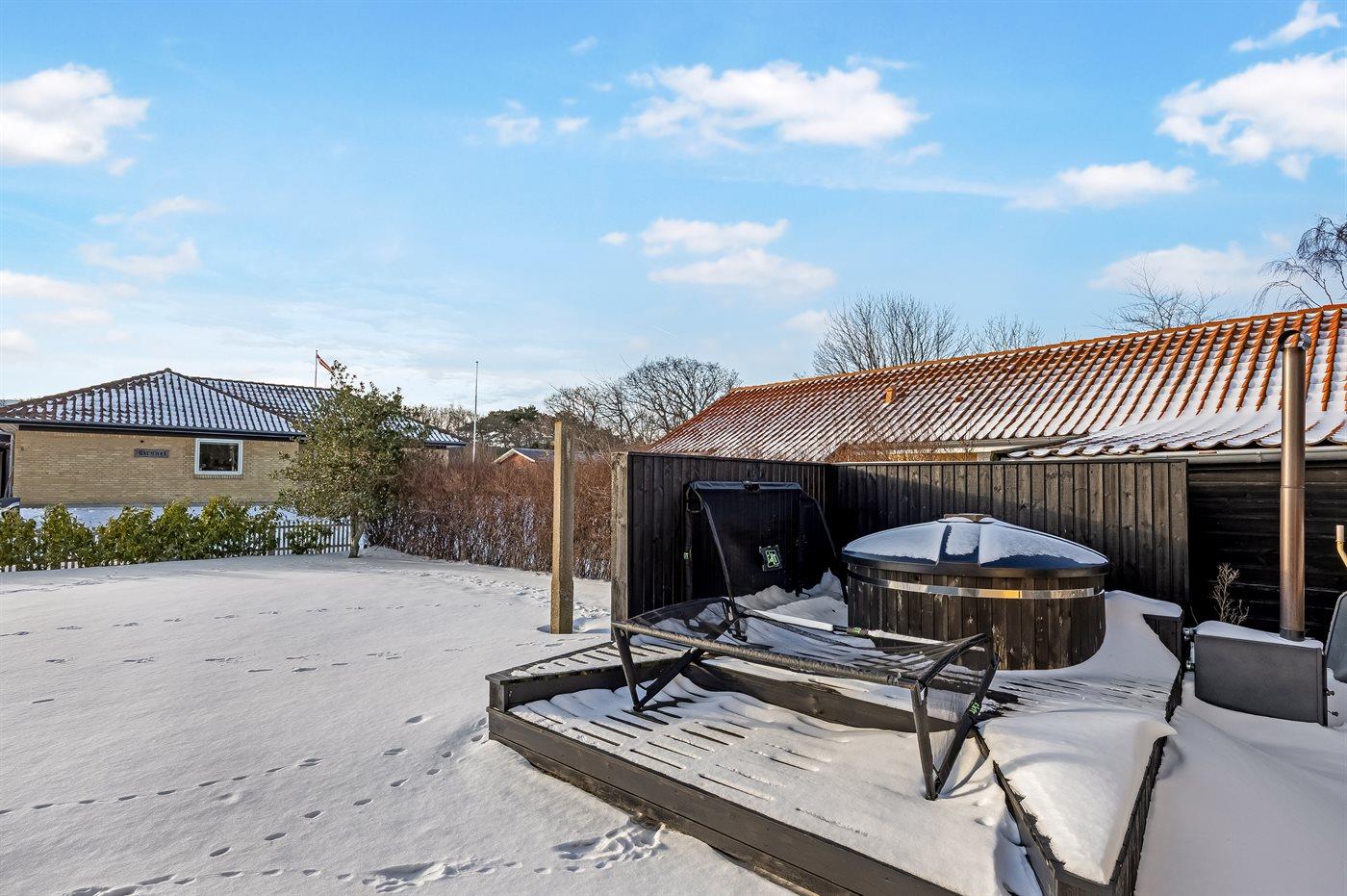 Ferieboligen er beliggende på en 920 m² stor naturgrund. Der er 650 m til havet. Nærmeste forretning er beliggende i en afstand af 500 m. Til ferieboligen hører åbent terrasseareal. Grill til rådighed. Parkering ved ferieboligen.