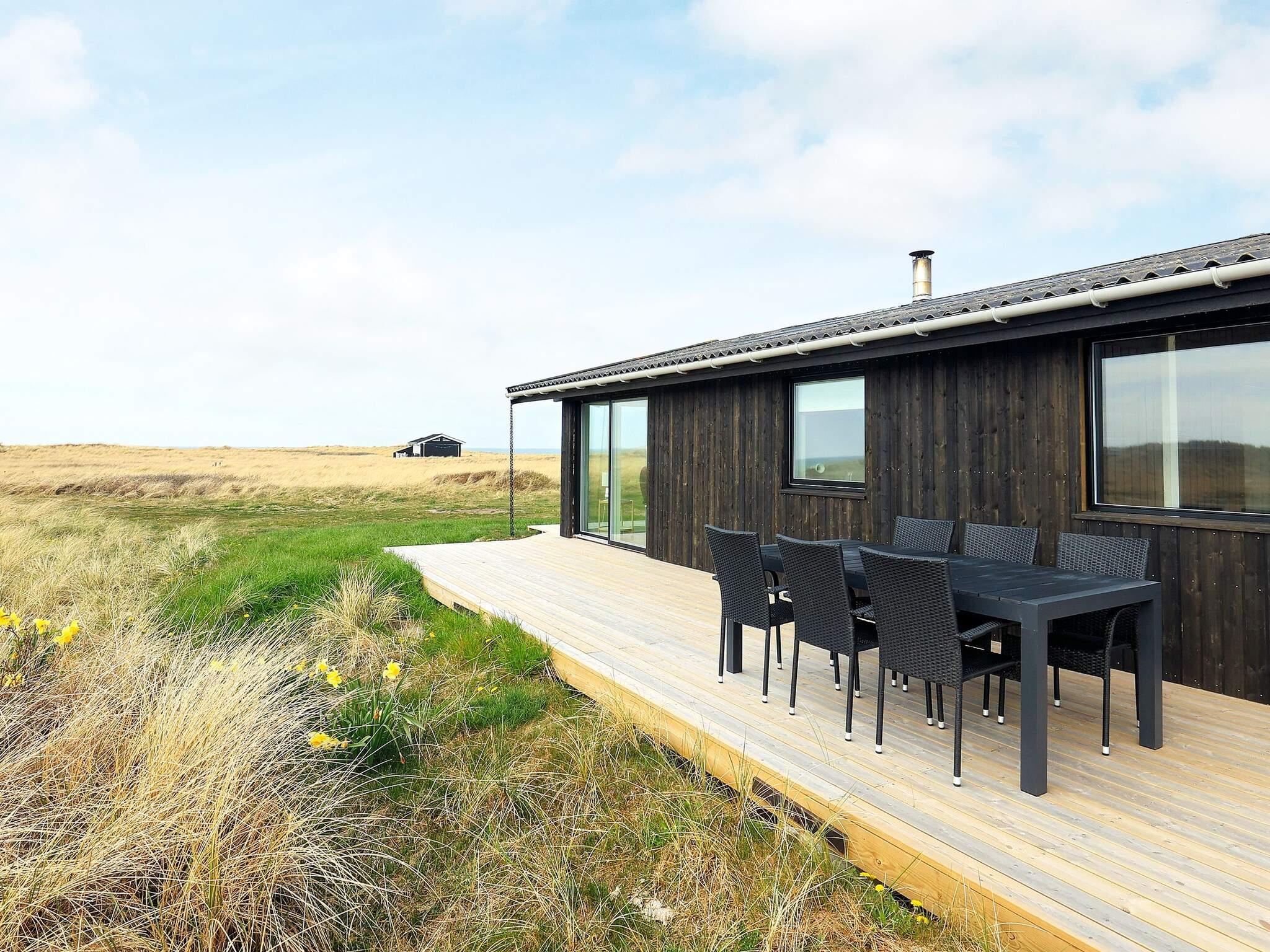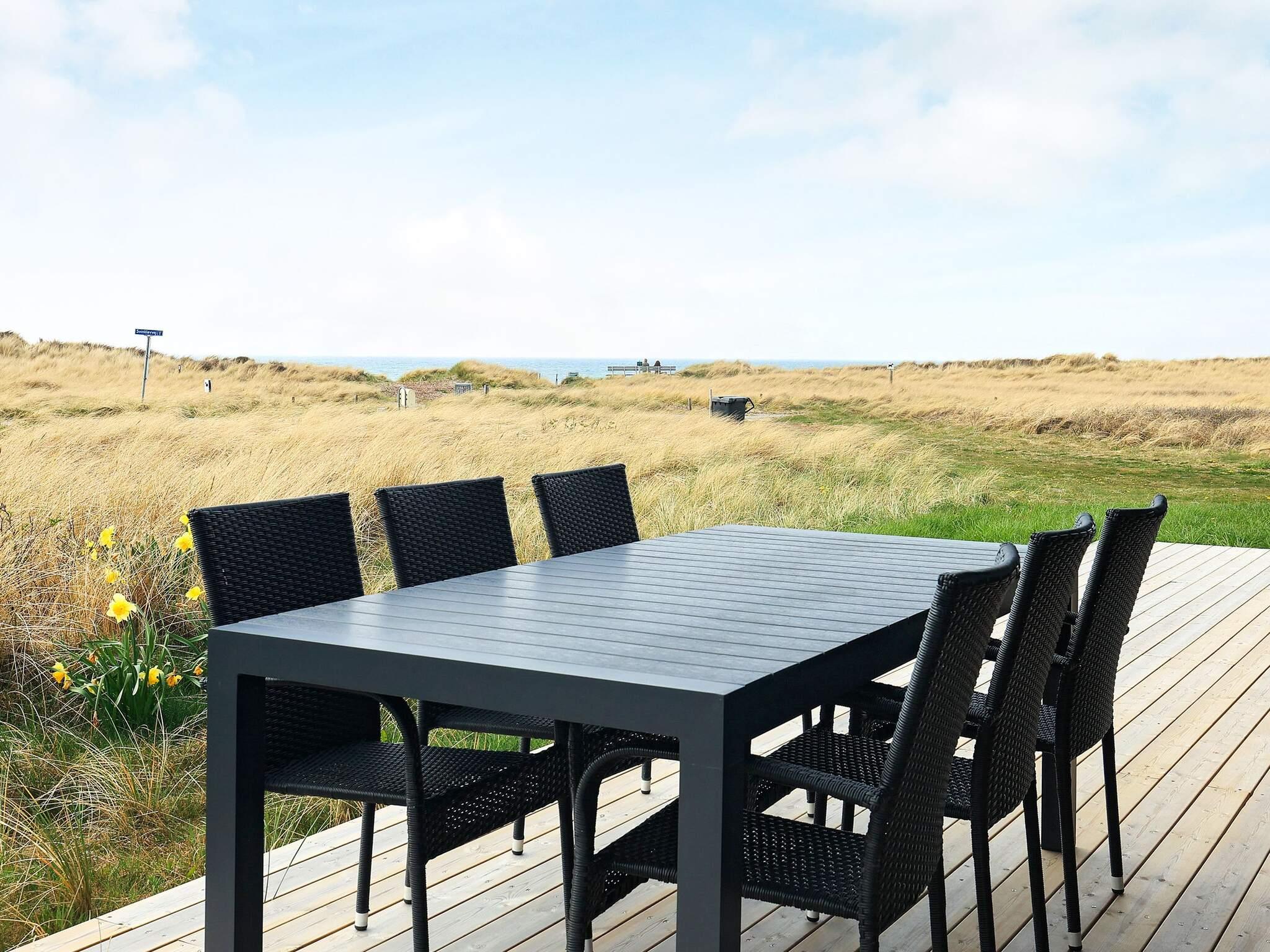 Lyst og velindrettet sommerhus med havudsigt og vildtmarksbad beliggende i 1. klitrække i det populære område Skallerup Klit, der indbyder til aktiviteter, vandreture og strandfiskeri. Inden døre er planløsningen gennemtænkt, så op til syv personer nemt og bekvemt kan holde ferie i sommerhuset. Her er tre gode soveværelser at gøre godt med, der ligesom stuen, køkkenet og badeværelset alle sammen er lyst og pænt indrettet. Køkken og stue ligger i åben forbindelse, så i opholdsafdelingen kan I nyde det gennemstrømmende lysindfald i løbet af dagtimerne. Når aftenen falder på, kan I skrue op for hyggestemningen ved at tænde op for brændeovnen, mens I kokkererer eller slapper af i sofaafdelingen. På tre af husets sider er der anlagt et skønt terrassemiljø, så alt efter tidspunktet på dagen kan I nyde solen fra øst, syd eller vest. Foretrækker I at sidde i skyggen, kan I rykke ind på det overdækkede terrasseafsnit, der ligger i forlængelse af stuen. Udlejes ikke til ungdomsgrupper.