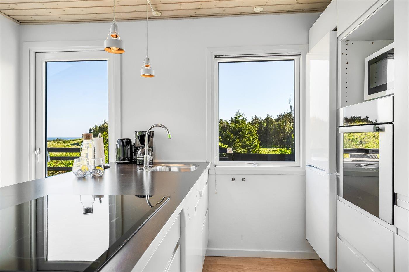Køkkenet er udstyret med 1 køleskab. Der er 4 keramiske kogeplader, varmluftovn, mikrobølgeovn samt opvaskemaskine.
