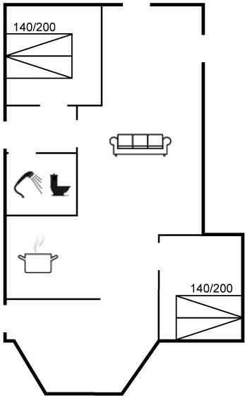 Der er i alt 2 soveværelser. Sovepladserne fordeler sig på: 4 sovepladser i dobbeltsenge.