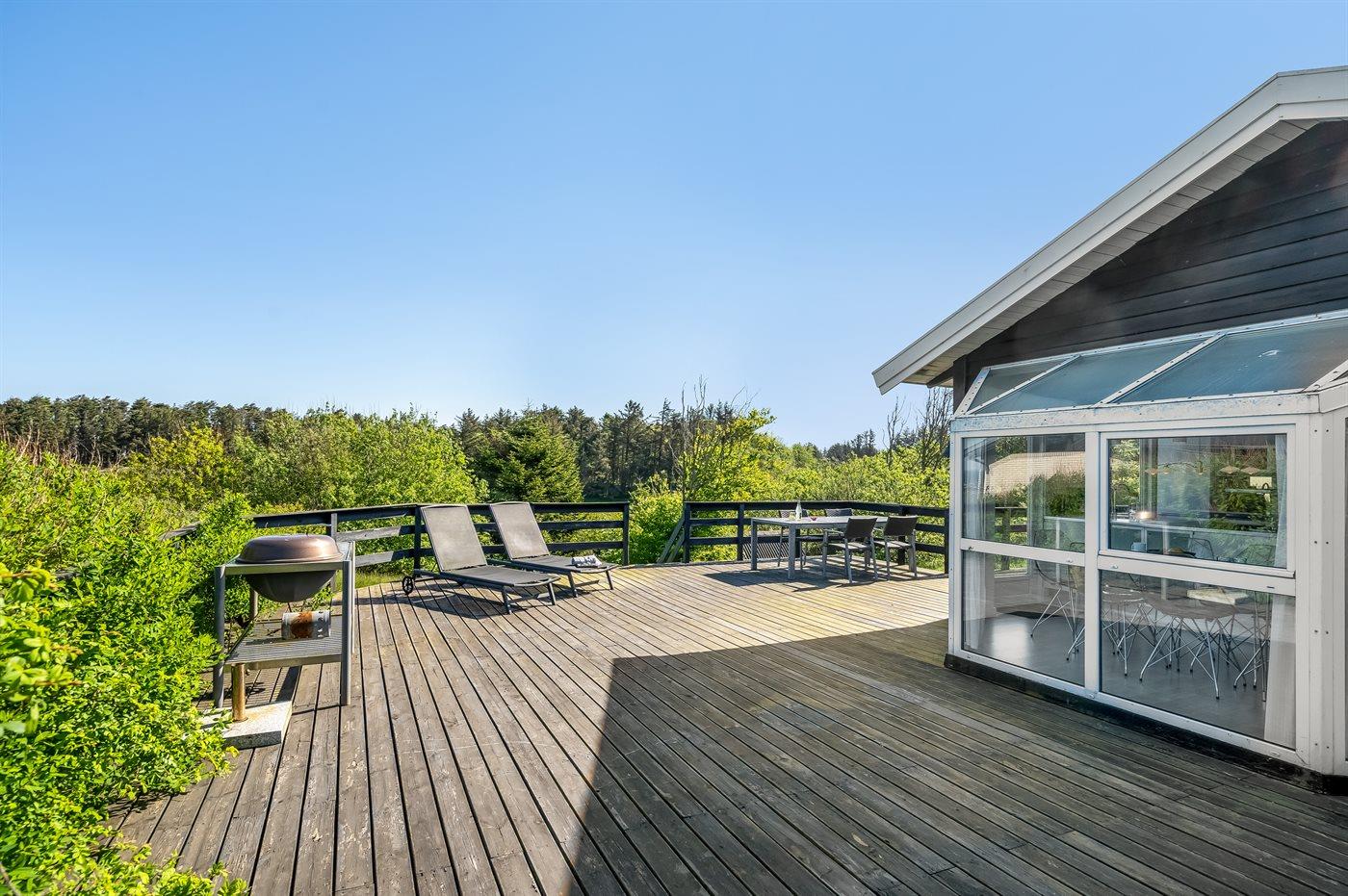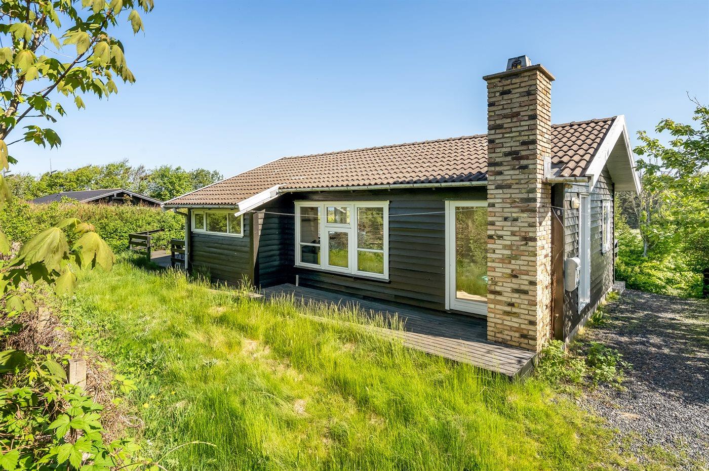 Højt beliggende med udsigt til havet og det omkringliggende naturområde fra såvel hus som grund ligger dette pragtfulde sommerhus på en kuperet grund, på en blind vej, nær dejlig badestrand, havet samt feriecenteret Skallerup Seaside Resort, der byder på et væld af aktiviteter for hele familien. Til huset hører en skøn terrasse, hvorfra udsigten over havet og de forbipasserende færger og skibe kan nydes.