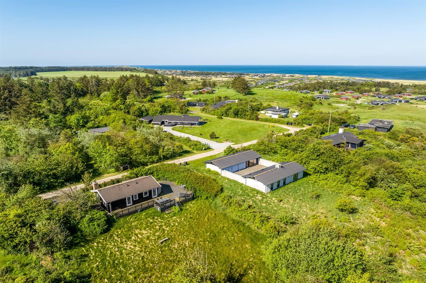 Ferieboligen er beliggende på en 2600 m² stor naturgrund. Der er 932 m til havet. Nærmeste forretning er beliggende i en afstand af 500 m. Til ferieboligen hører 60 m² terrasseareal. Der er redskabsrum. Parkering ved ferieboligen.