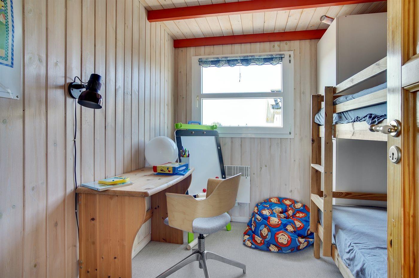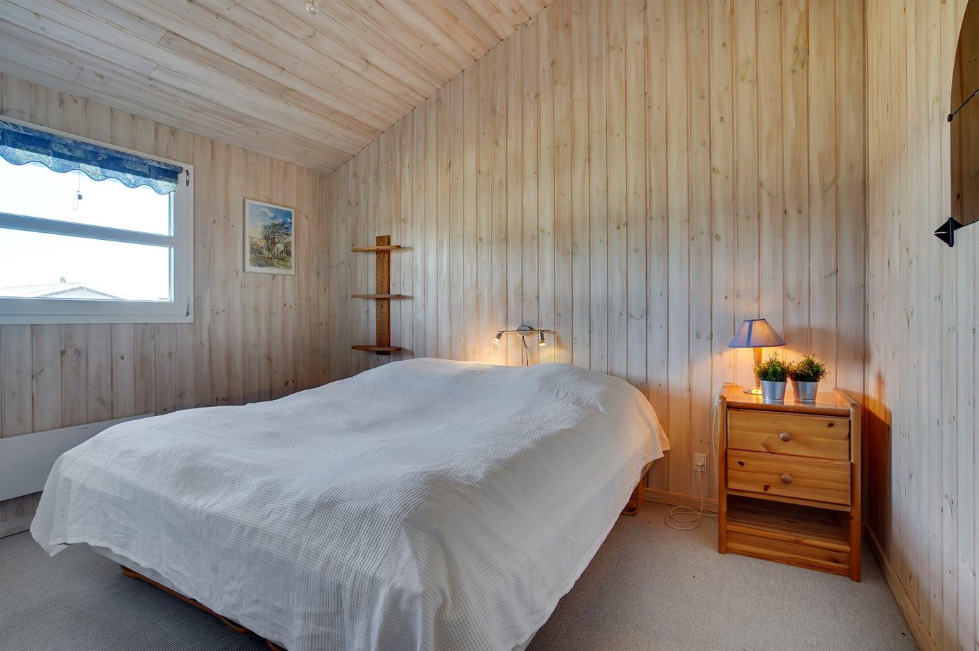 Der er i alt 3 soveværelser. Sovepladserne fordeler sig på: 4 sovepladser i dobbeltsenge. 2 sovepladser i køjeseng. 2 sovepladser på madrasser. 2 af disse sovepladser befinder sig på husets hems. Derudover er der 1 stk. barneseng.