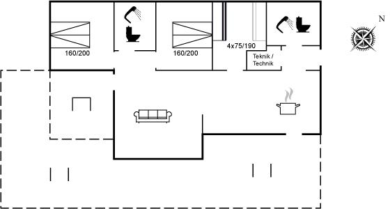 Der er i alt 3 soveværelser. Sovepladserne fordeler sig på: 4 sovepladser i dobbeltsenge. 4 sovepladser i køjesenge.