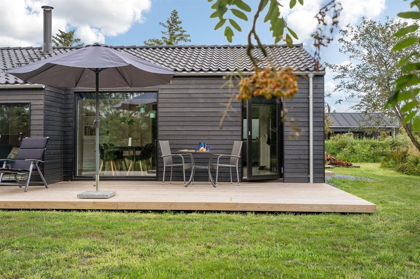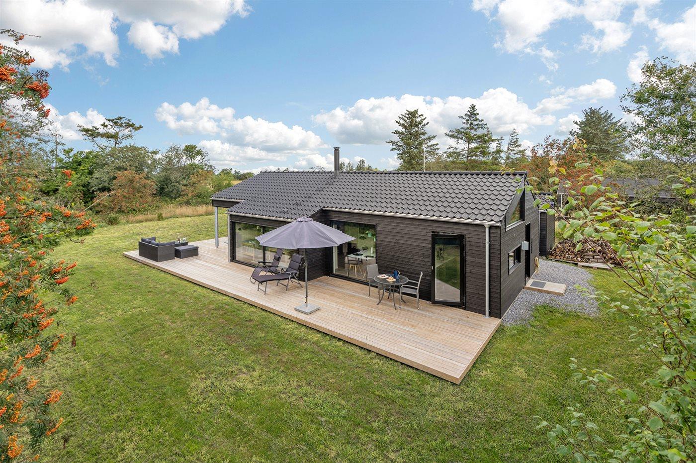 Nyt sommerhus fra 2020 med en god beliggenhed i rolige og naturskønne omgivelser og med dejlig badestrand og tropisk badeland lige i nærheden.