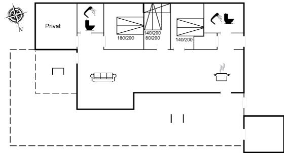 Der er i alt 3 soveværelser. Sovepladserne fordeler sig på: 6 sovepladser i dobbeltsenge.1 soveplads i køjeseng.