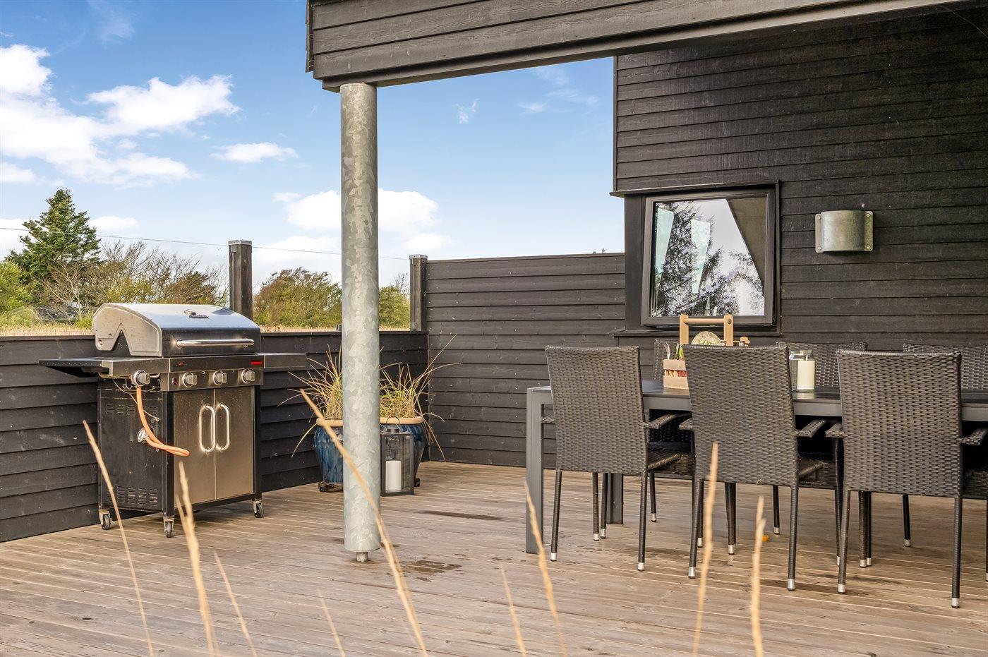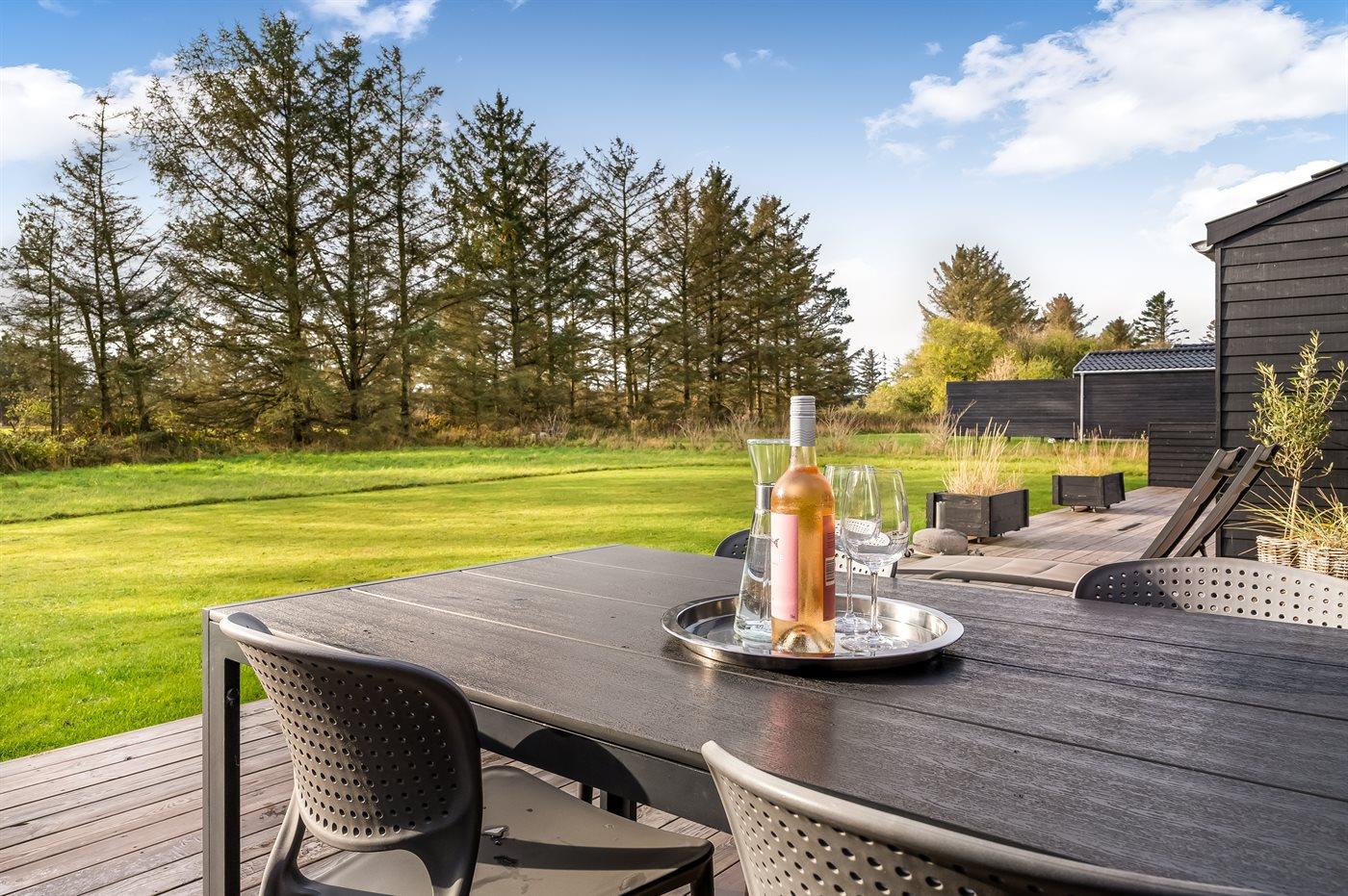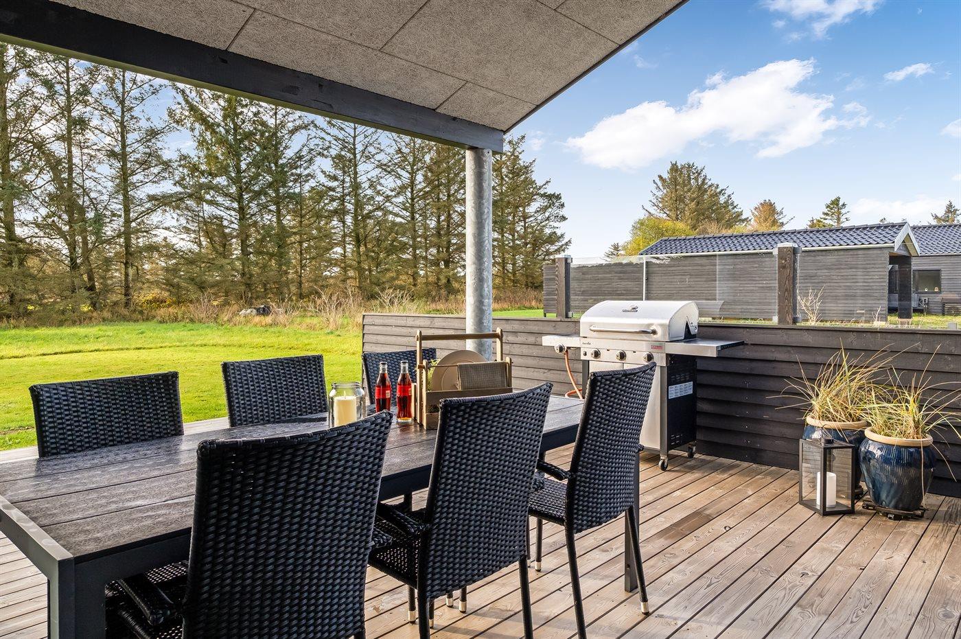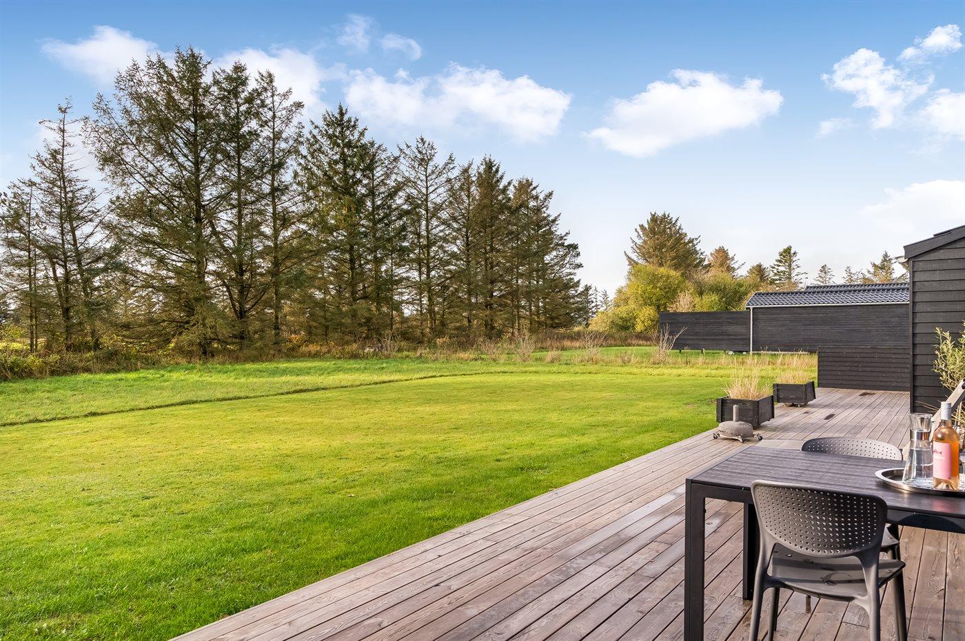 Ferieboligen er beliggende på en 2960 m² stor naturgrund. Der er 1500 m til havet. Nærmeste forretning er beliggende i en afstand af 1200 m. Til ferieboligen hører 25 m² terrasseareal. Grill til rådighed. Der er installeret stik til opladning af elbil. Type 2 stik. Parkering ved ferieboligen.