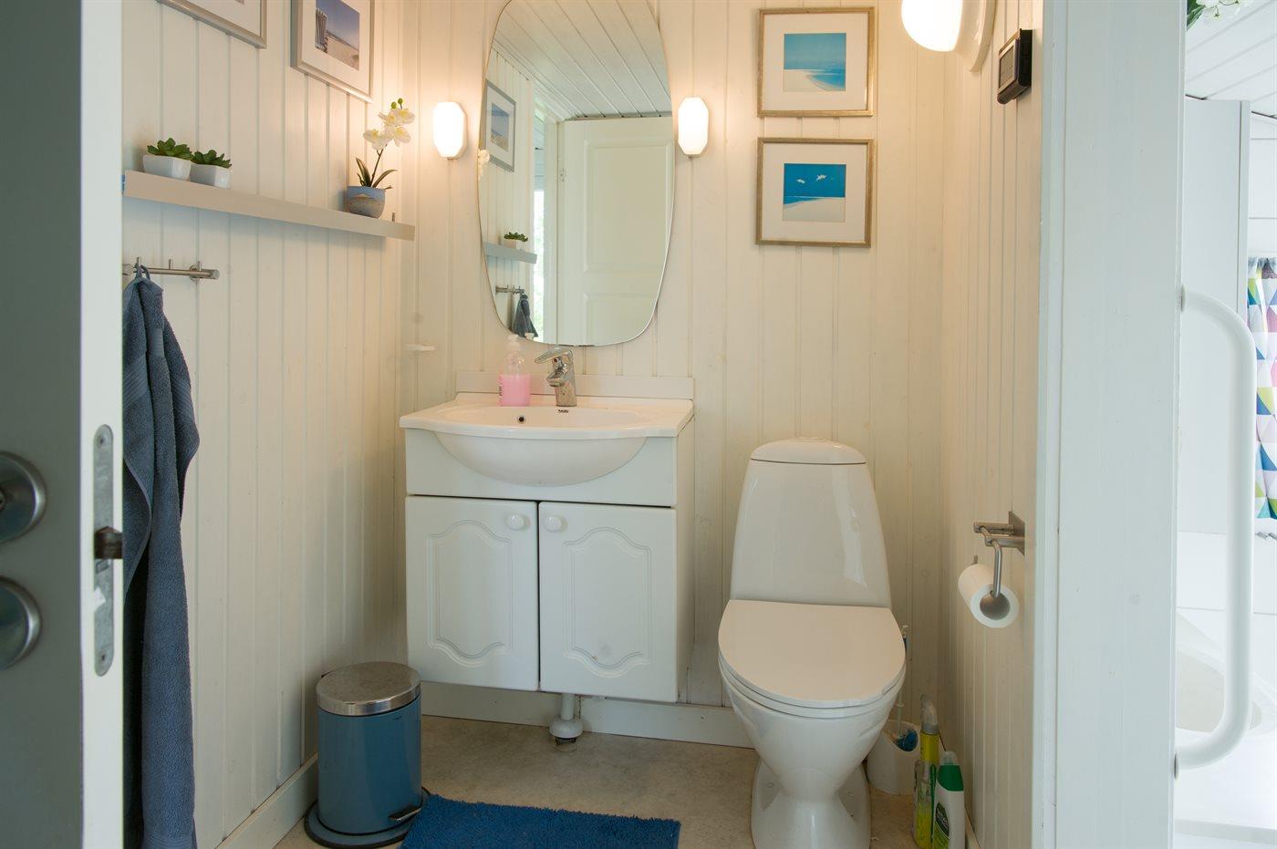 Der er 1 badeværelse med bruseniche og 1 toilet.. Der er gulvvarme på 1 badeværelse. I saunaen er der mulighed for afslapning.