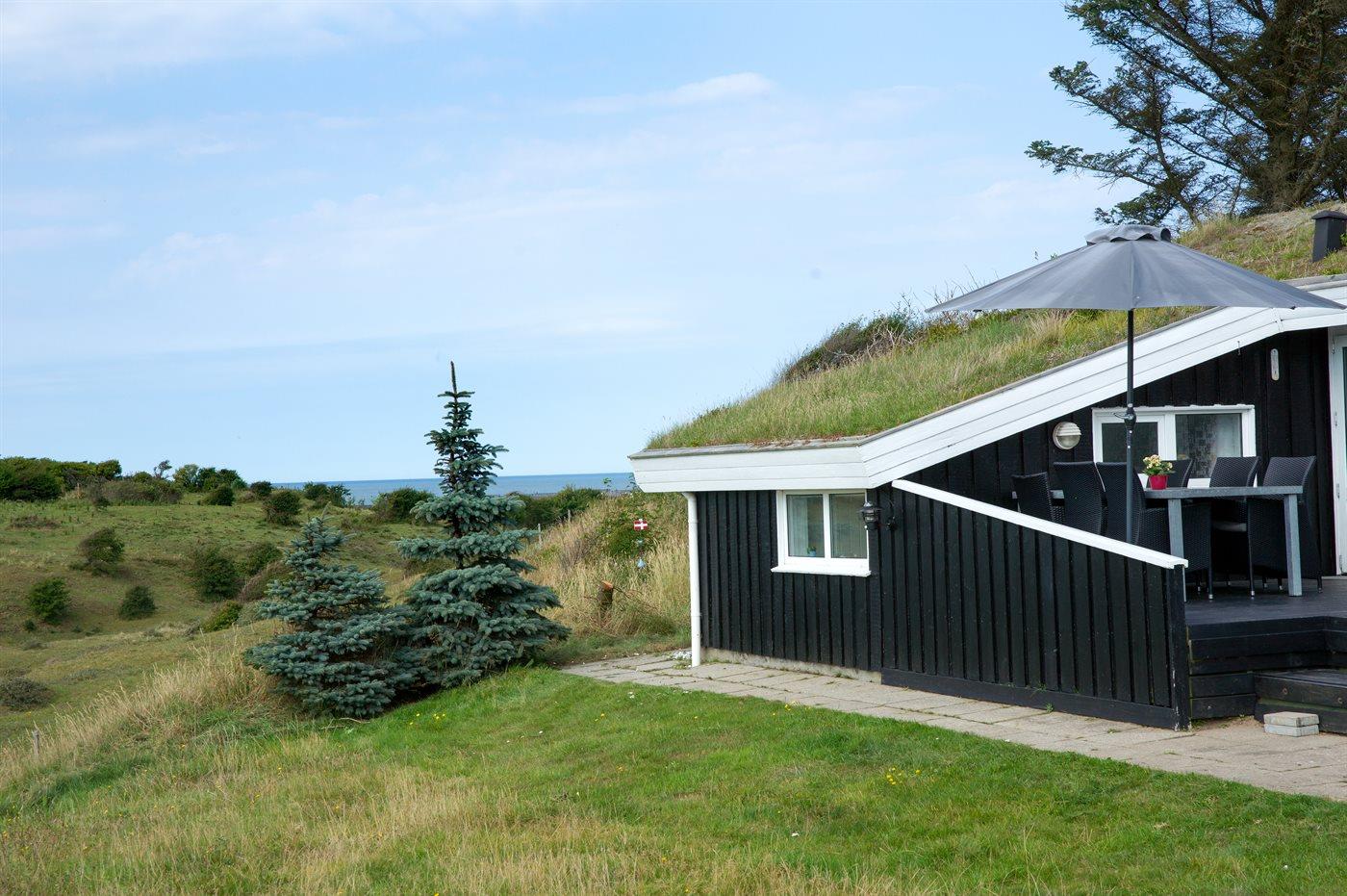 Ferieboligen er beliggende på en 2900 m² stor naturgrund. Der er 1000 m til havet. Nærmeste forretning er beliggende i en afstand af 900 m. Til ferieboligen hører 60 m² terrasseareal. Der er redskabsrum. Gynge. Trampolin. Legetårn. Rutchebane. Grill til rådighed. Parkering ved ferieboligen.