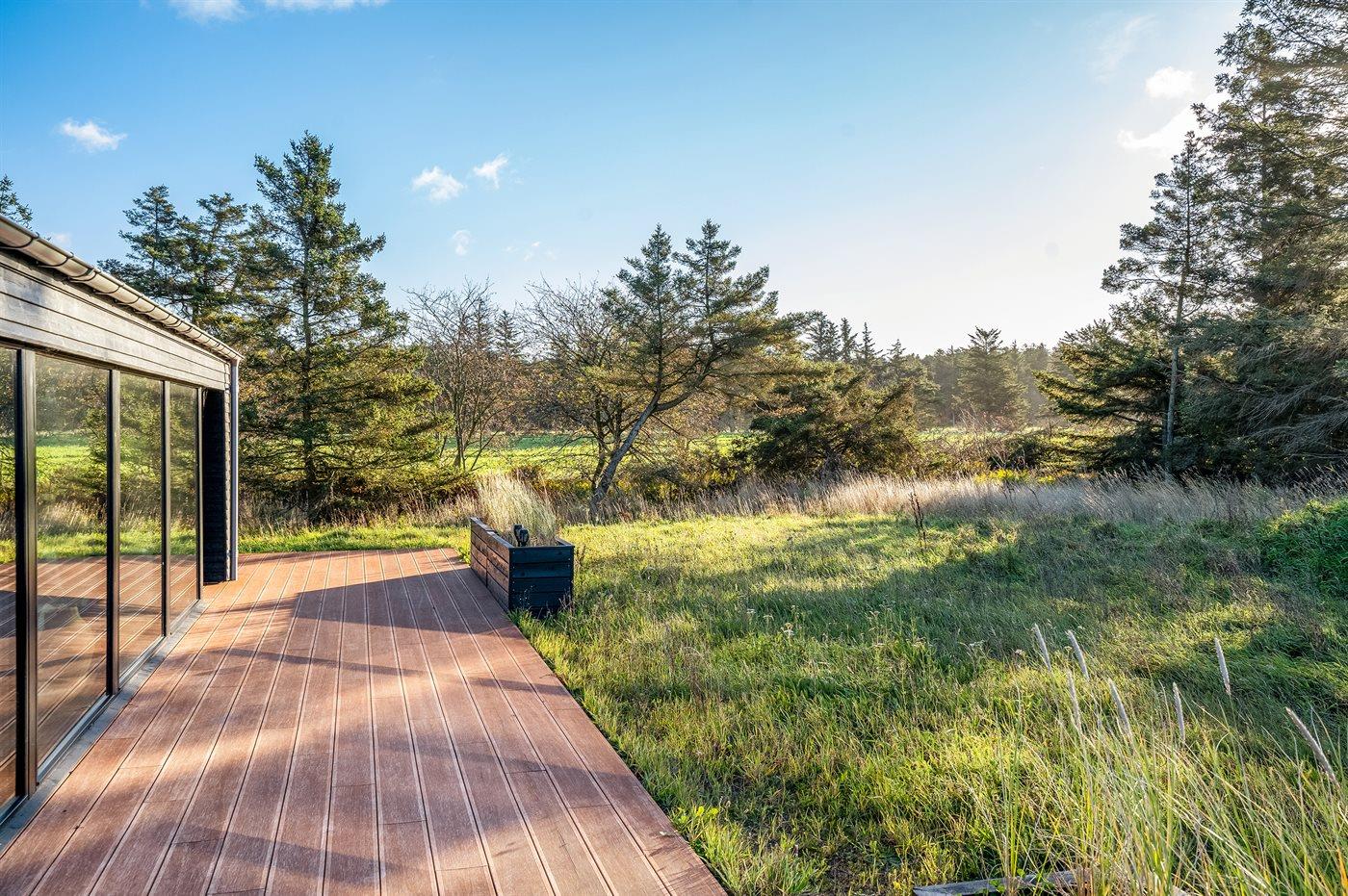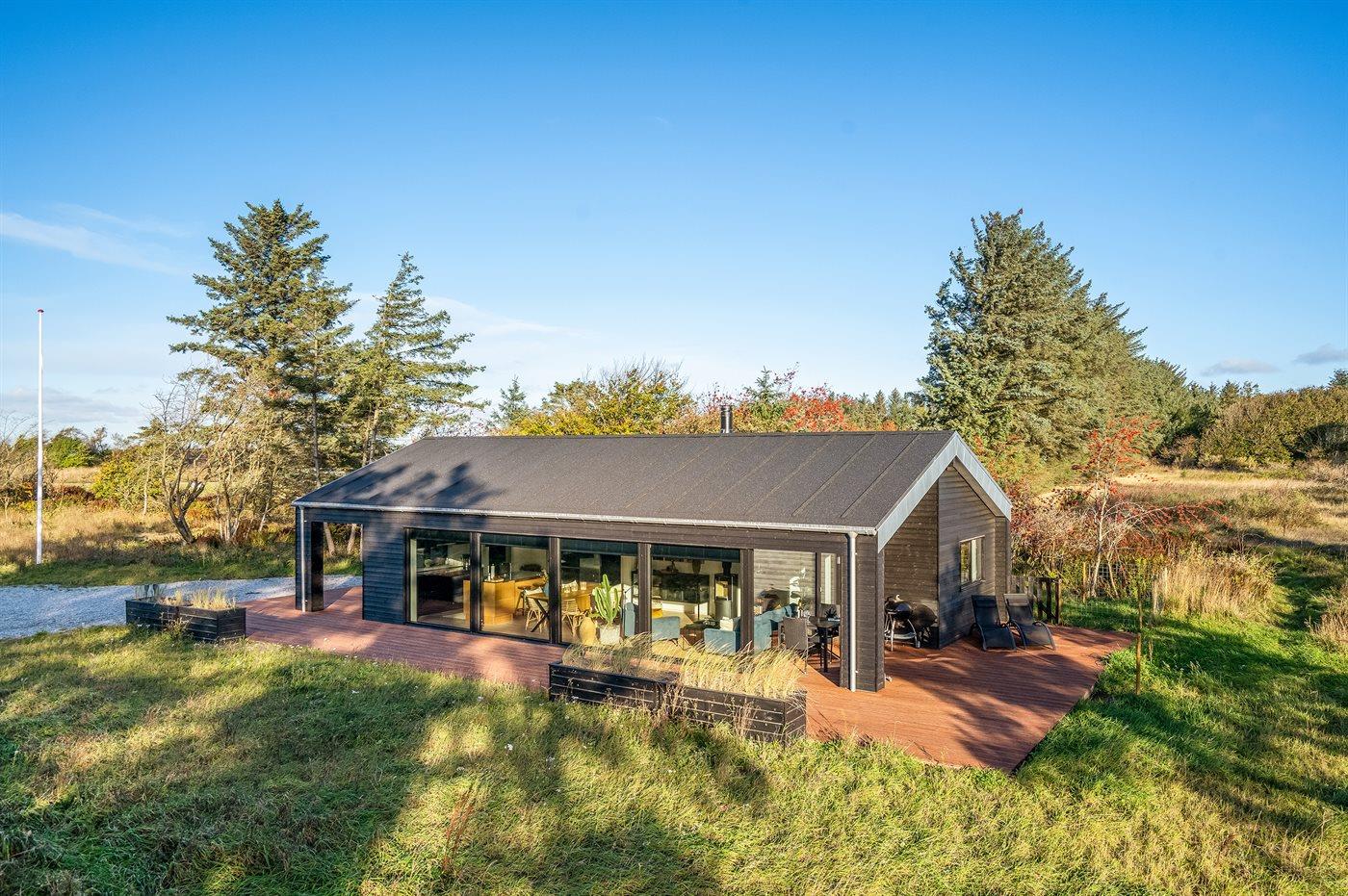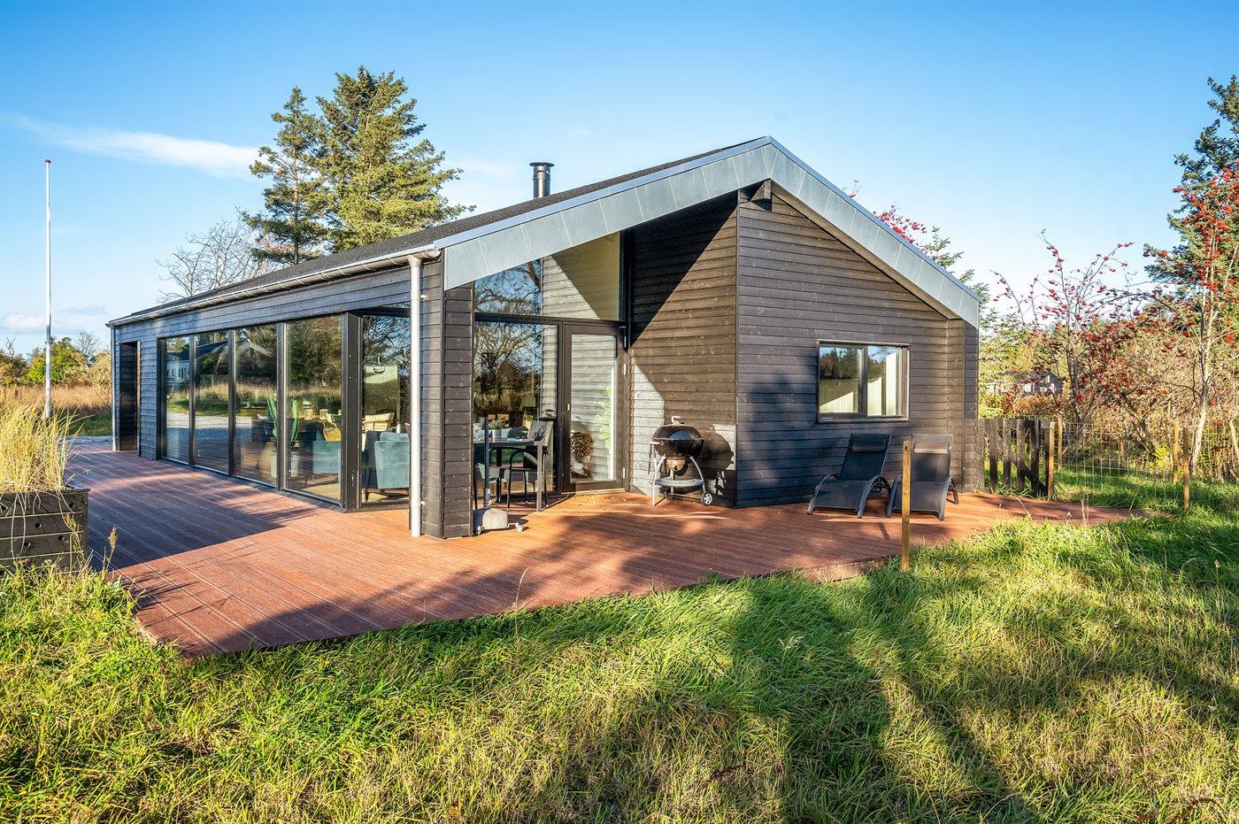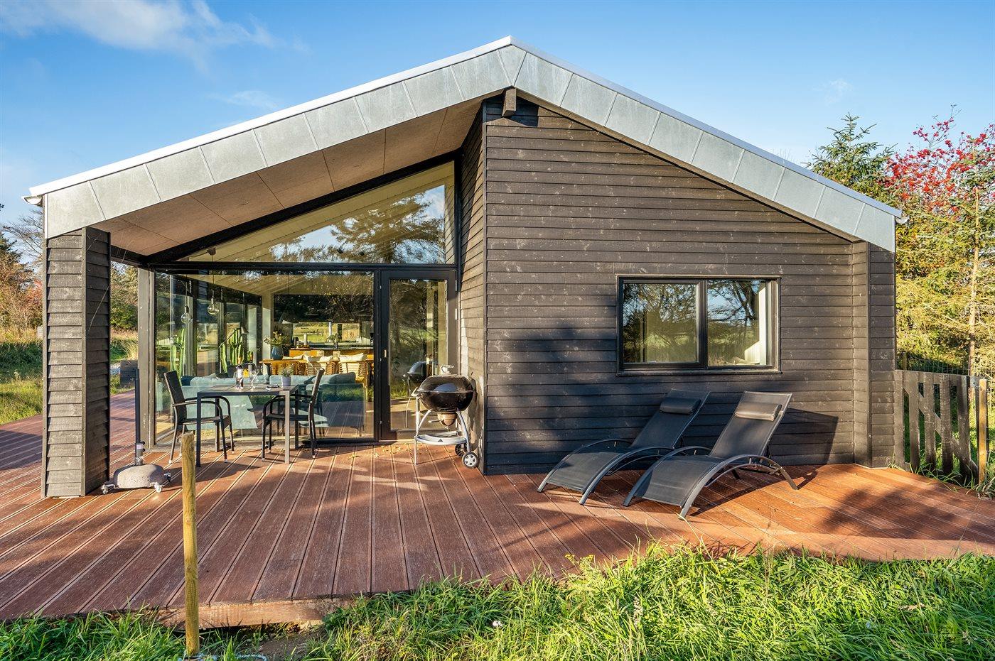 Moderne sommerhus fra 2021 nær Skallerup med store terrasser og adgang til ferieresortets aktiviteter.