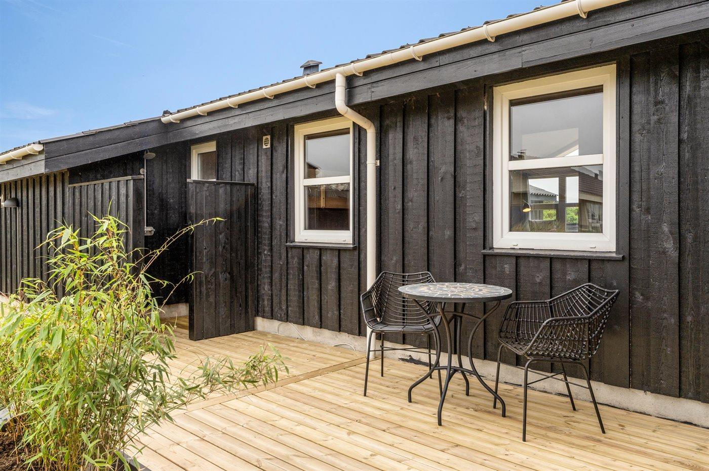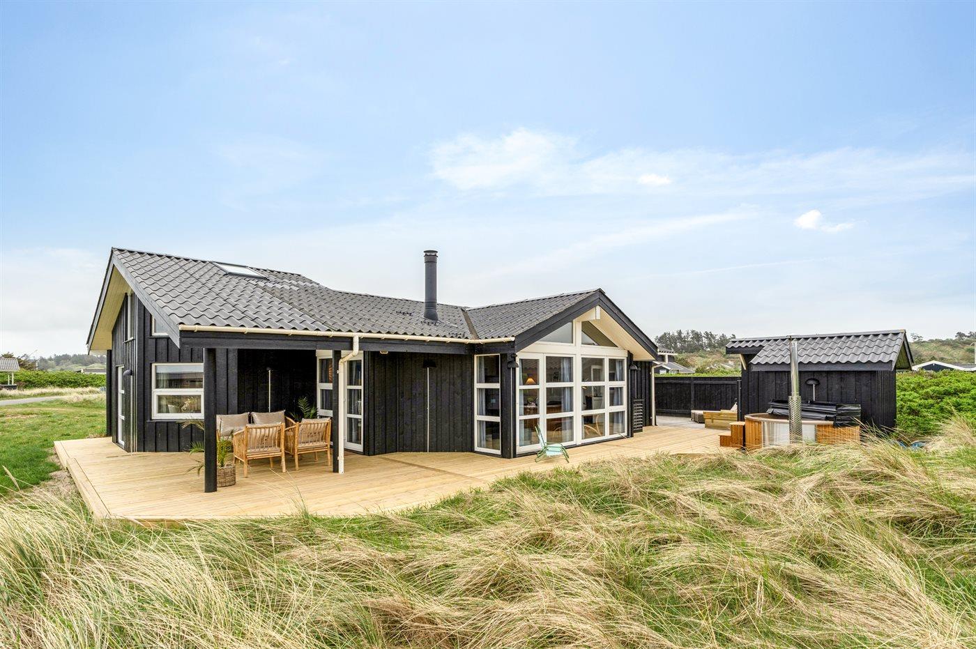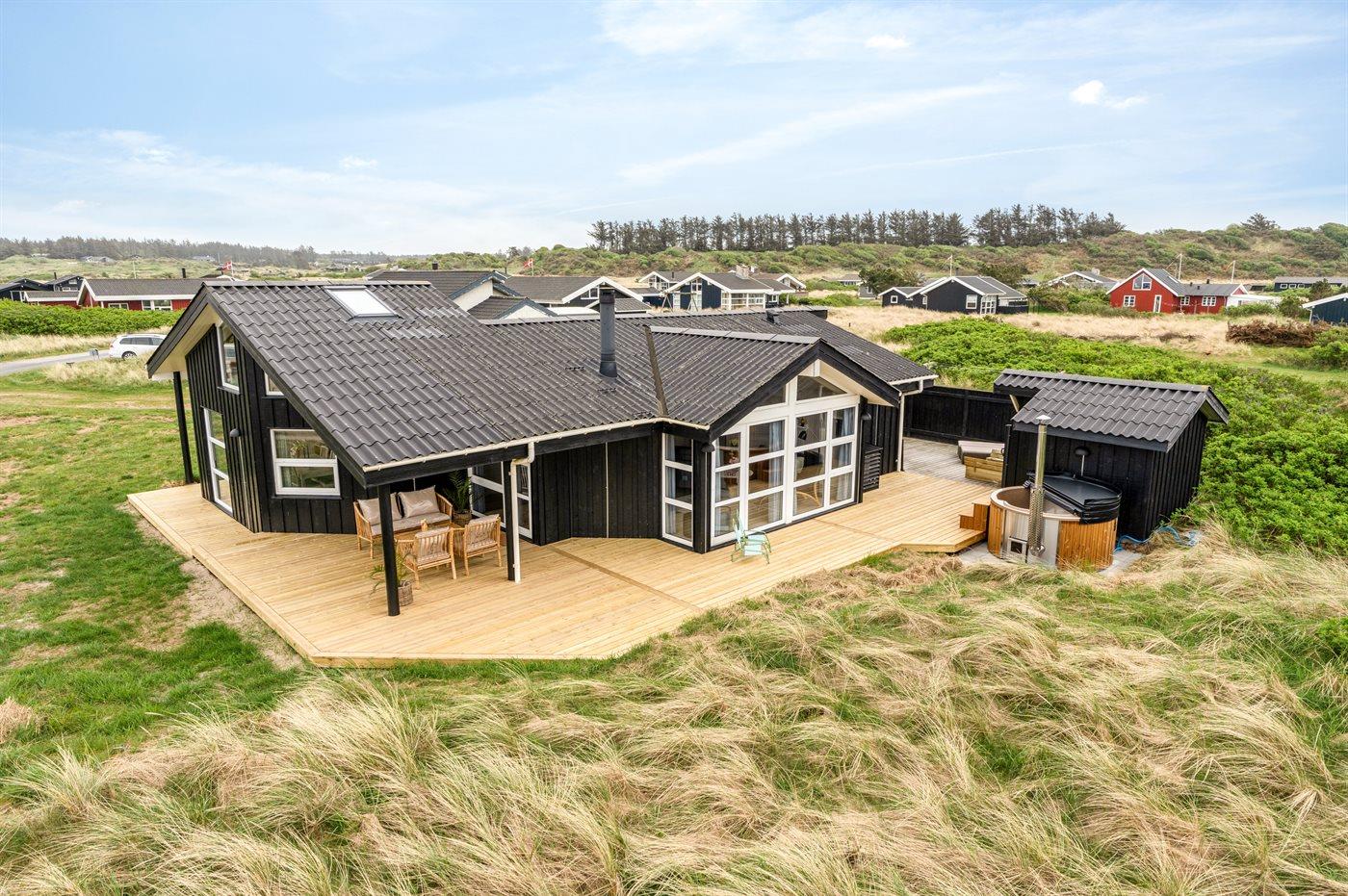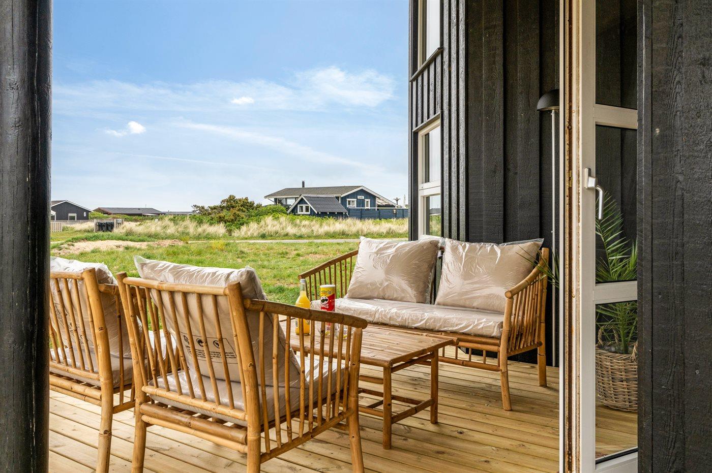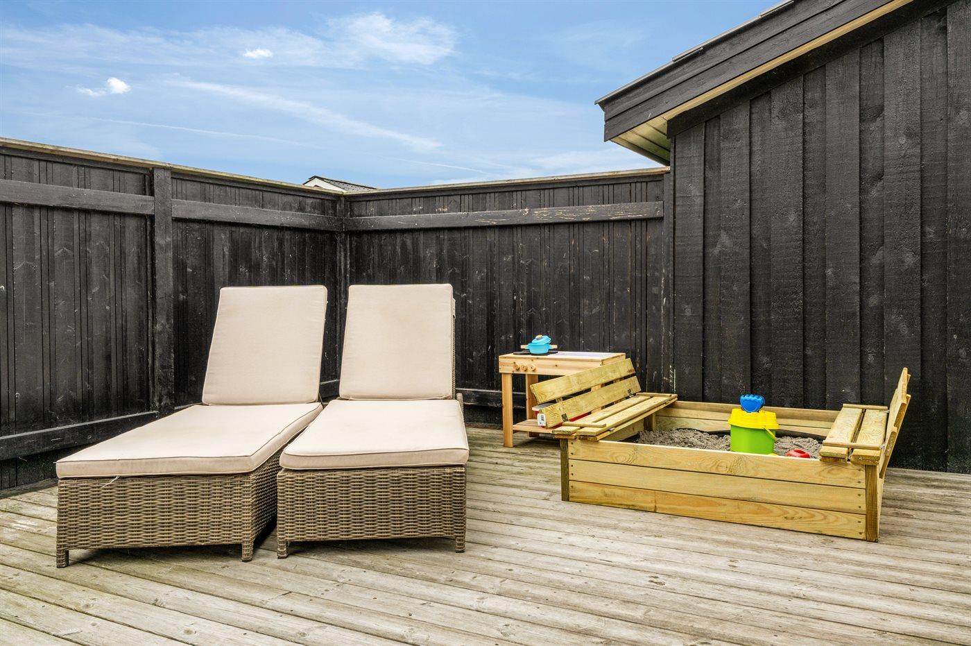 Ferieboligen er beliggende på en 1275 m² stor naturgrund. Der er 280 m til havet. Nærmeste forretning er beliggende i en afstand af 800 m. Til ferieboligen hører åbent terrasseareal. Desuden er der overdækket terrasse. Der er redskabsrum. Sandkasse. Udendørs bruser. Grill til rådighed. Parkering ved ferieboligen.