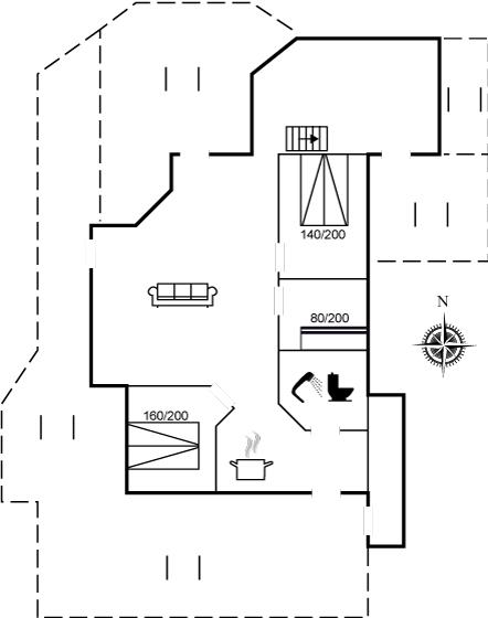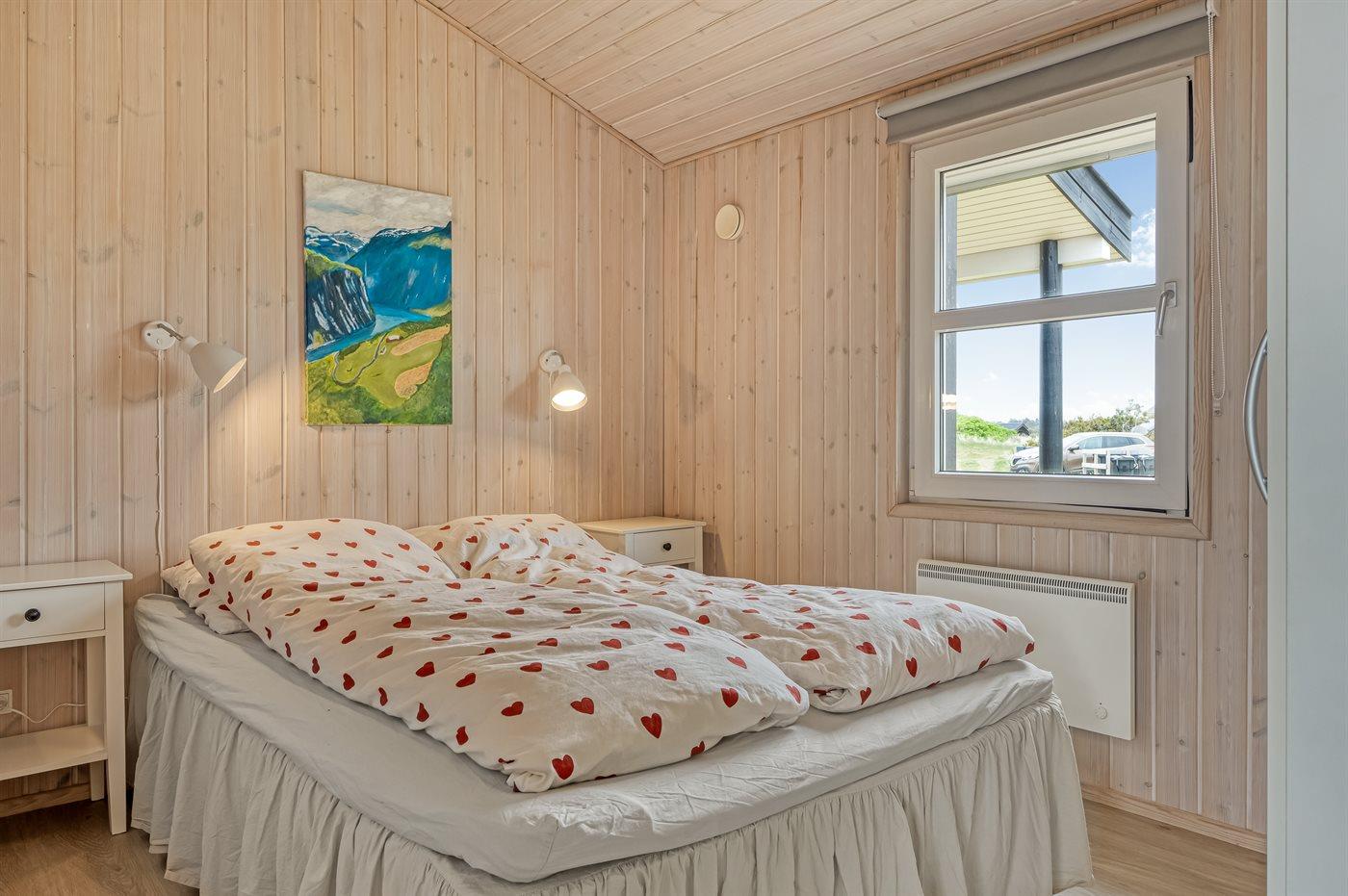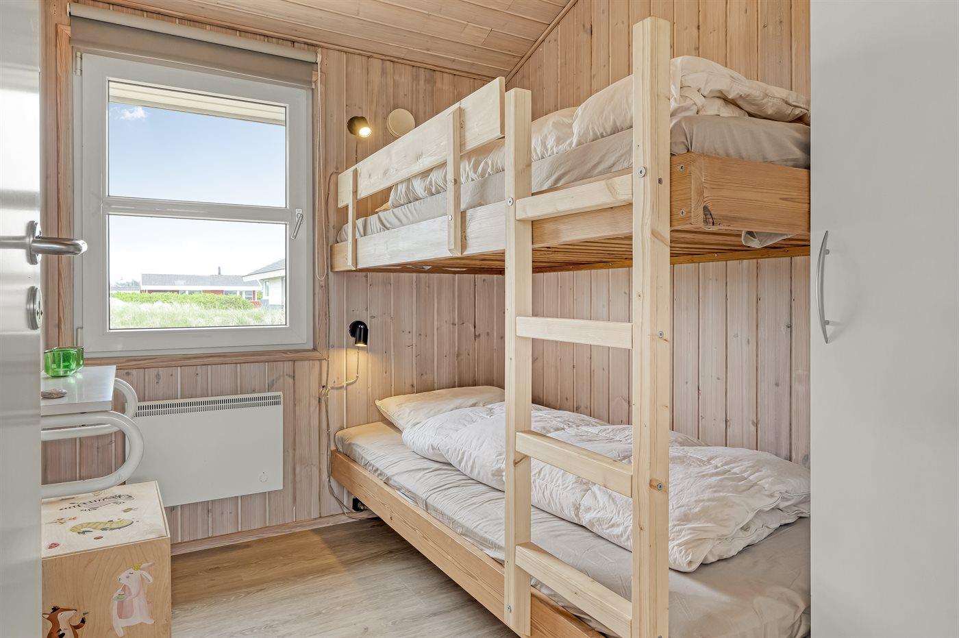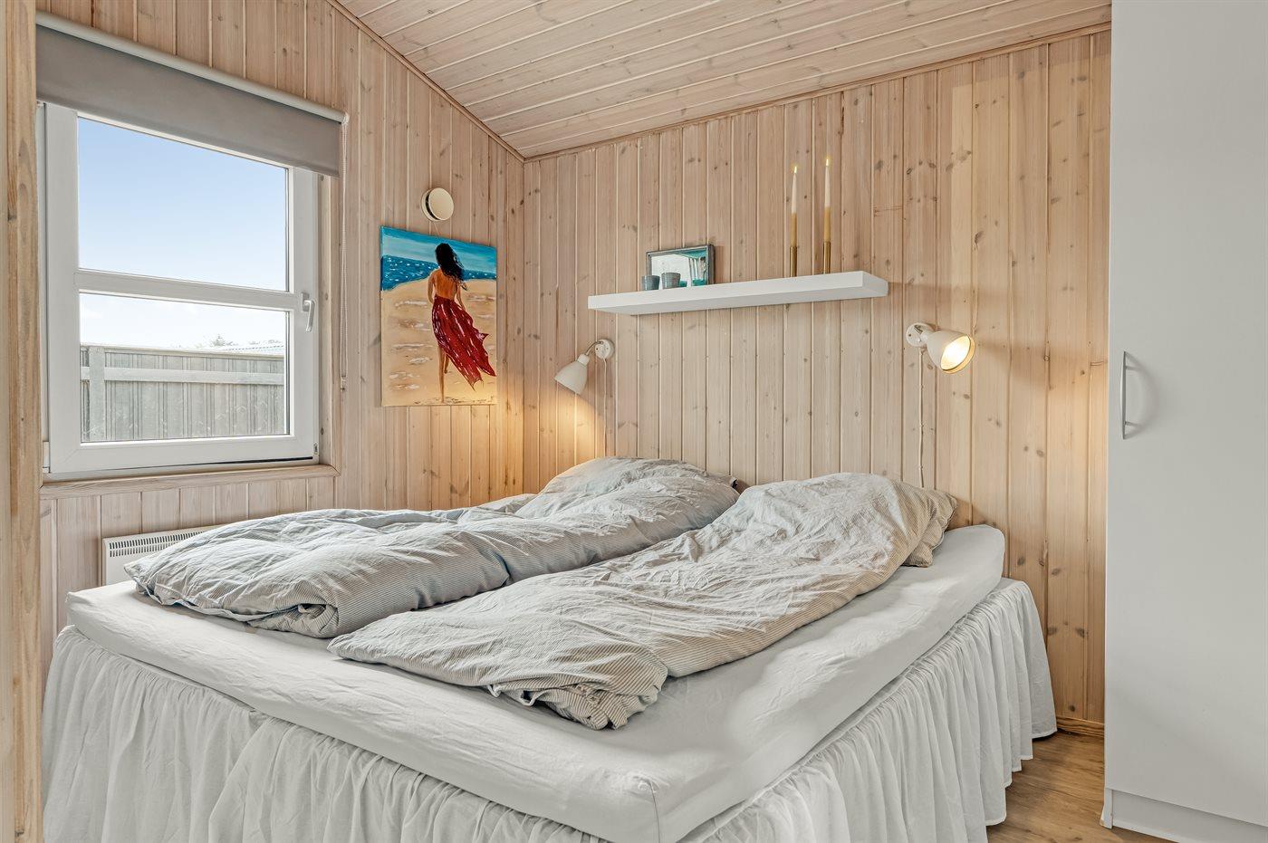 Der er i alt 3 soveværelser. Sovepladserne fordeler sig på: 4 sovepladser i dobbeltsenge. 2 sovepladser i køjeseng. 2 sovepladser på madrasser. 2 af disse sovepladser befinder sig på husets hems.