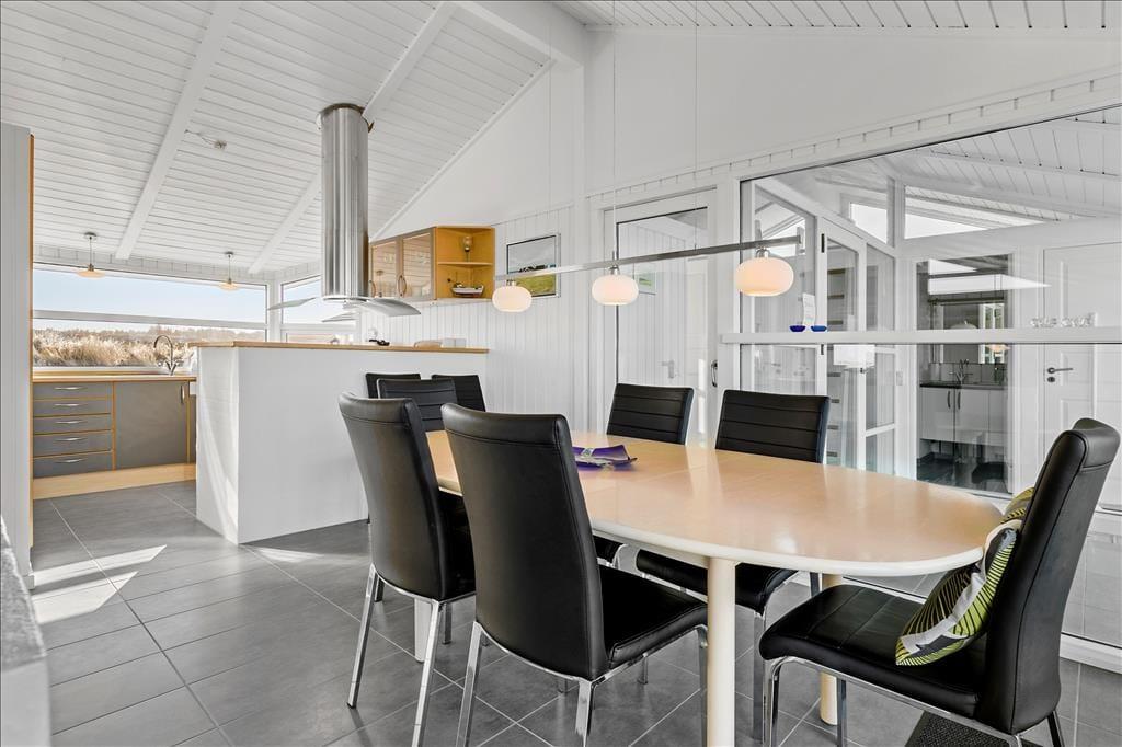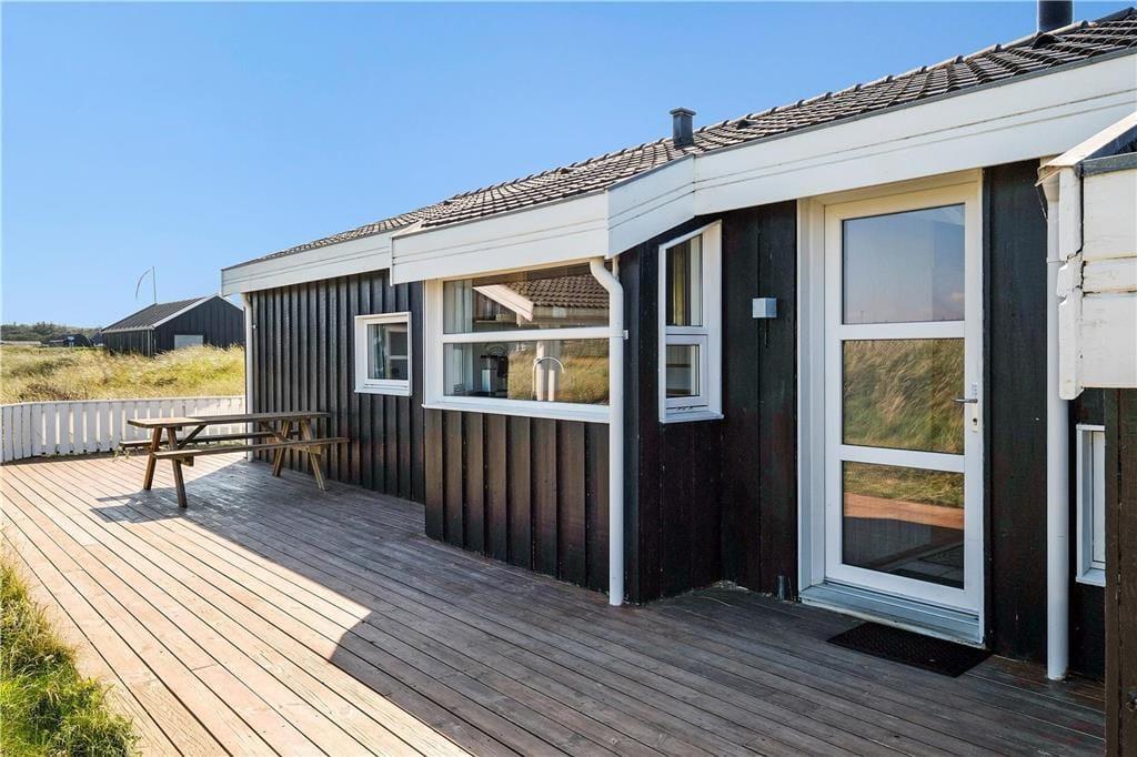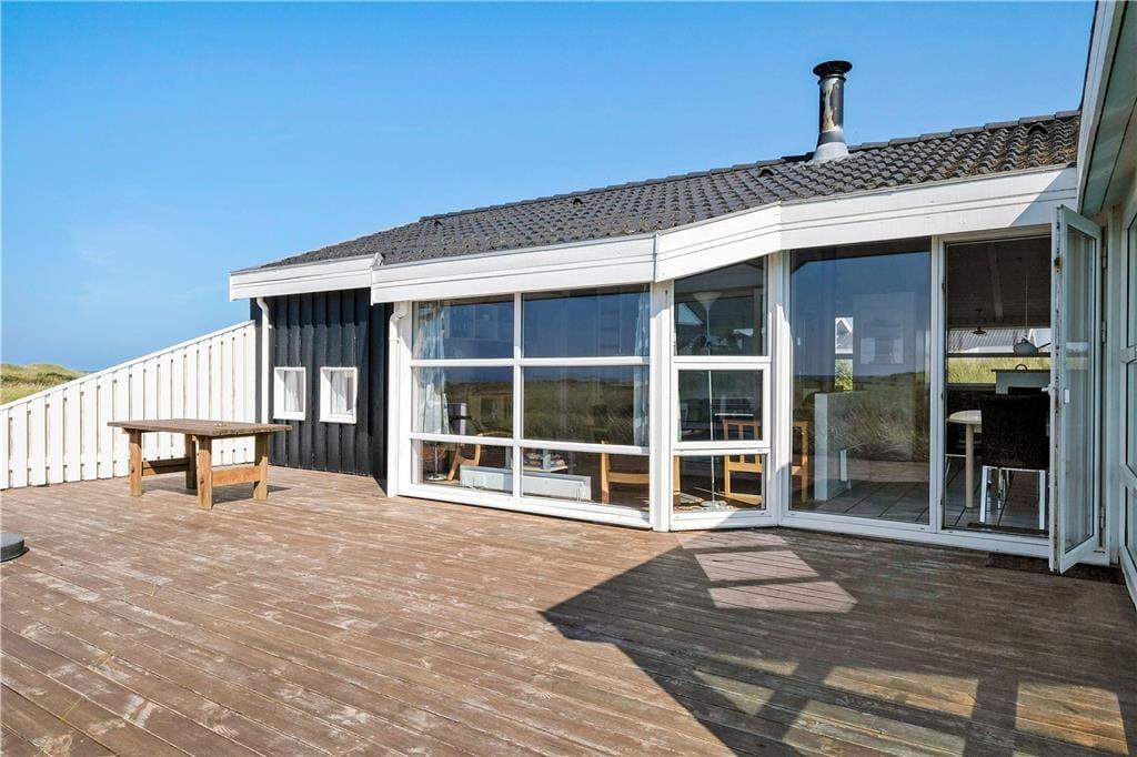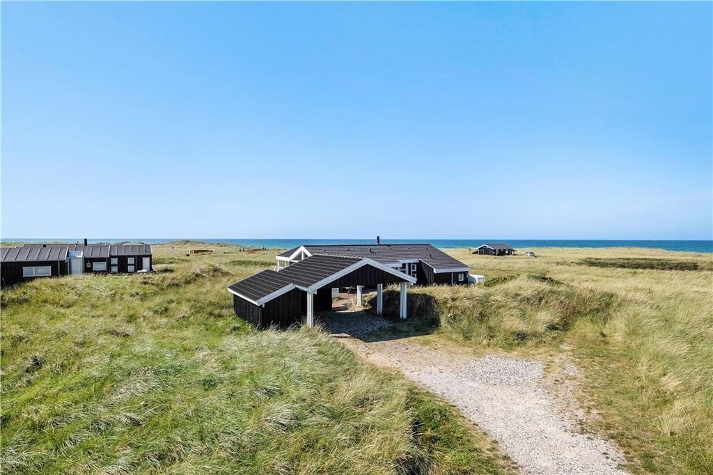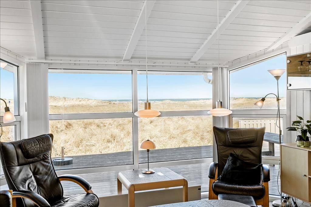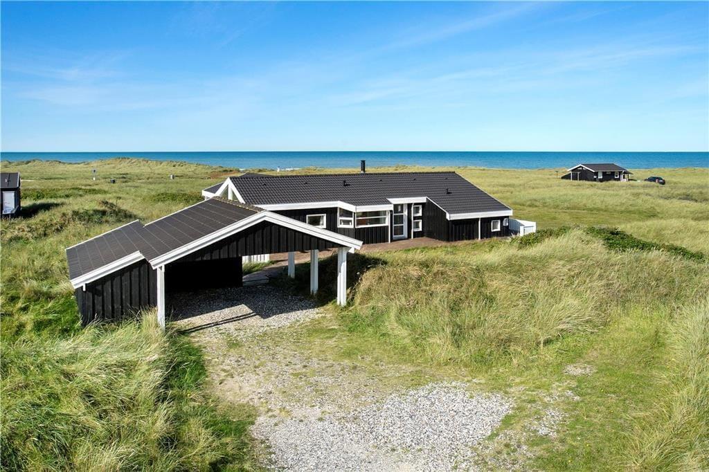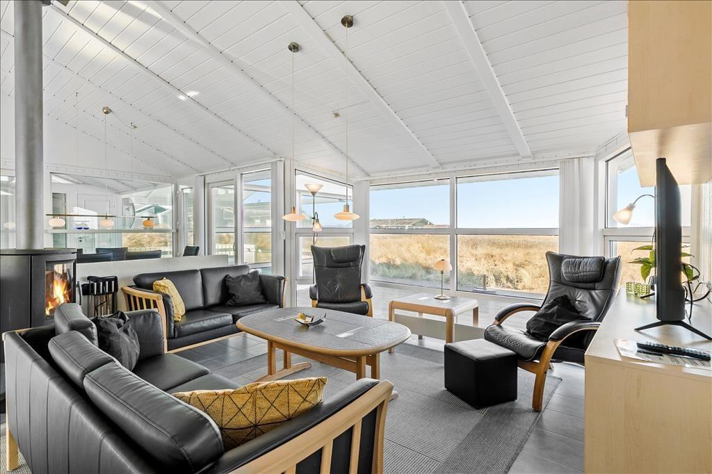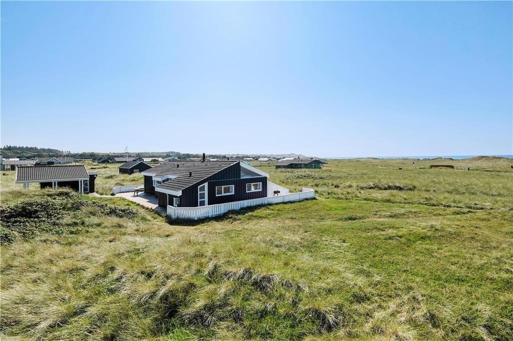 Huset har en unik placering på en 3.000 m2 stor naturgrund. Her får I Vesterhavet helt tæt på, og I kan nyde den friske, salte havluft fra husets dejlige terrasser. Der er terrasser hele vejen rundt om huset, så der er rig mulighed for at søge sol, skygge eller læ efter behov. Her kan man sidde i timevis og kigge ud over det bølgende landskab, der skifter farve og karakter, som dagen skrider frem. Og når aftenen falder på, kan I servere aftensmaden på den store terrasse med havet som bagtæppe – meget bedre bliver det ikke.