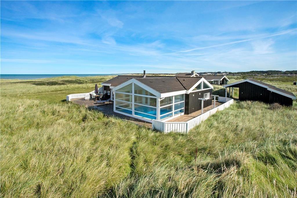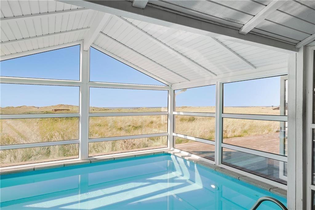 Nyd naturen fra allernærmeste hold i dette eksklusive poolhus, der ligger smukt placeret i det flotte landskab ved Skallerup Klit – blot 70 meter fra Vesterhavets brusende bølger.