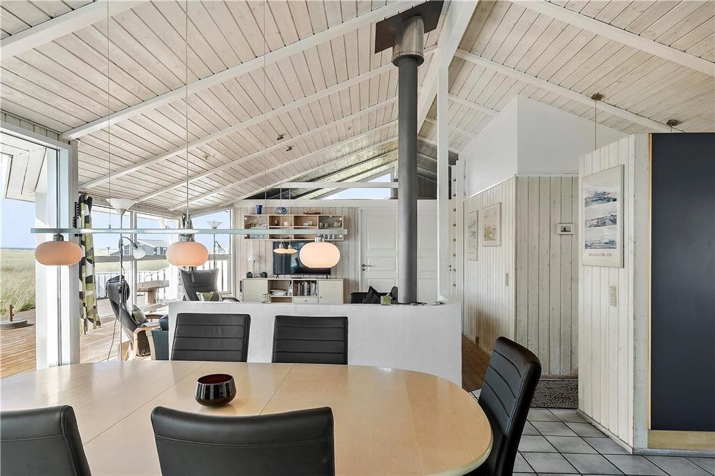 Der er masser af moderne komfort og lækre detaljer i huset, der har fire soverum og plads til otte personer. Lyset strømmer ind gennem de mange vinduespartier, og loft til kip understøtter oplevelsen af lys og luft. De naturskønne omgivelser sættes smukt i scene, og fra både pool, køkken-alrum og stue kan man nyde den enestående udsigt til vandet og den fri natur. Køkkenet er udstyret med lækre hvidevarer og giver optimale betingelser for de kulinariske udfoldelser. Maden kan serveres ved det store spisebord, og aftenstunden kan tilbringes i brændeovnens skær i de bløde møbler.