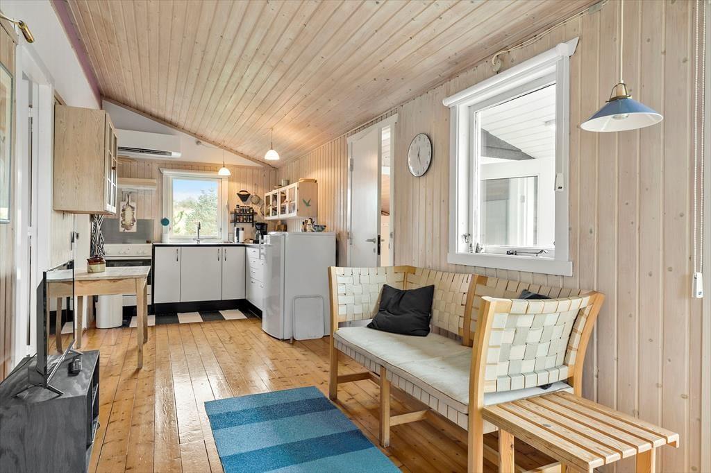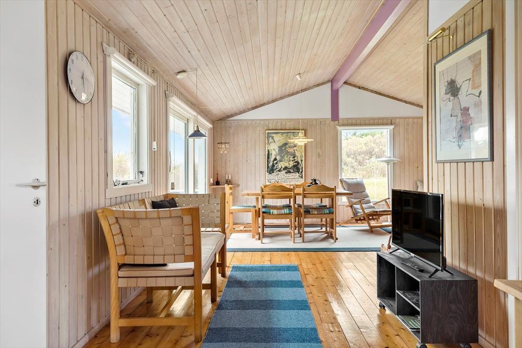 Dette pæne og velholdte sommerhus har en skøn placering på en lille, lukket vej i Skallerup Klits naturskønne omgivelser. Der er meget dyrevildt i området, så måske spotter I harer eller rådyr gennem vinduet, eller når I bevæger jer gennem det smukke landskab ned mod Vesterhavet.