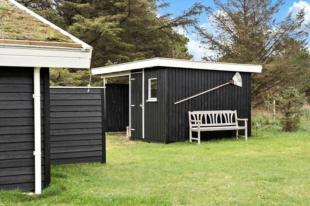 På den 2794 m2 store naturgrund er der græsplæne nær huset, mens træer og buske sørger for læ og privatliv. Beplantningen er dog holdt lav flere steder, så I kan nyde det flotte vue over det åbne landskab. Rundt om sommerhuset har I flere terrasser og bænke at vælge imellem, når I vil slå jer ned med en god kop kaffe i en solstråle, og hvis I vil tilberede aftensmaden i det fri, er der en grill til rådighed.