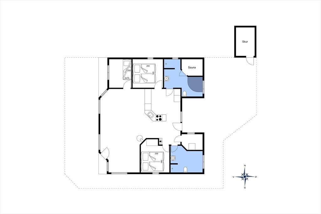 Sommerhusets 102 m2 er blevet holdt ordentligt ved lige siden opførelsen i 1997, og med loft til kip, store vinduespartier og brændeovn er der en dejlig atmosfære inden døre. Det stilfulde interiør er med til at sikre, at I har en både komfortabel og funktionel ramme om ferielivet: For eksempel er det åbne køkken udstyret med alt, hvad I skal bruge for at lave lækker mad, og i stuen har I god plads til at slappe af og hygge jer sammen. På det mere praktiske plan er der vaskemaskine og tørretumbler i et lille depotrum, og på det største af husets to badeværelser bliver I forkælet med spabad og sauna. Planløsningen byder også på tre gode soveværelser, så alt i alt er det en fin feriebolig til seks personer.