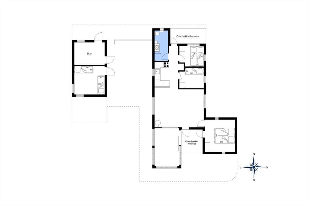 Rundt om sommerhuset breder et skønt terrassemiljø sig. Ved siden af udestuen er der et overdækket område, mens der er flere åbne læ kroge og opholdspladser at vælge imellem – blandt andet en solrig terrasse, der ligger ugeneret og dejligt afskærmet mellem huset og annekset.