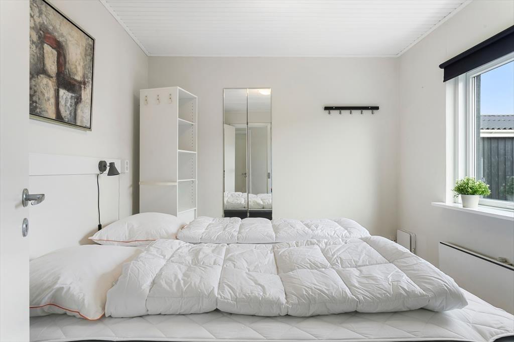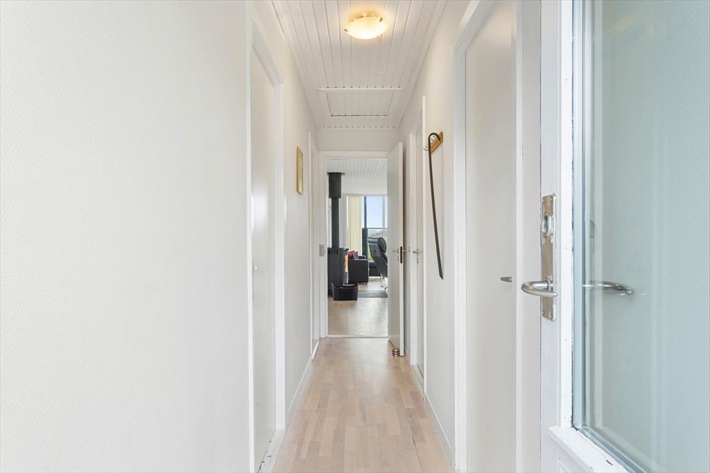 Indenfor mødes du af en varm og hjemlig atmosfære, der indbyder til afslapning fra første øjeblik. Indretningen er hyggelig og velafbalanceret, så du straks føler dig godt tilpas. Det åbne opholdsrum fungerer som husets naturlige samlingspunkt – her kan I samles om spil, god mad eller blot nyde varmen fra den knitrende brændeovn, mens vinden rusker udenfor. Lyset strømmer ind gennem vinduerne og skaber en lys og indbydende stemning, som understreger husets rolige og afslappende udtryk. De rummelige soveværelser gør det nemt at finde sig til rette, uanset om du er afsted med familie eller venner, og der er tænkt på, at alle skal kunne trække sig tilbage og finde ro efter en dag med frisk havluft.