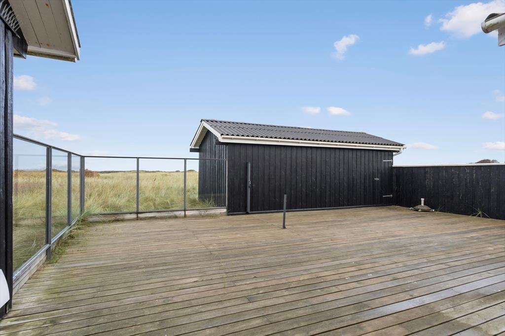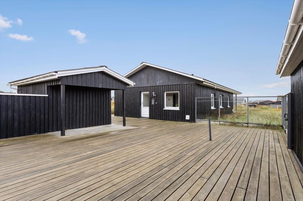 Sommerhusets store terrasse er et sandt trumfkort – her er både god plads, læ for vinden og endda en overdækket del, så du kan sidde ude, selv når skyerne trækker forbi. Terrassen vender perfekt i forhold til solen, og uanset om du nyder morgenkaffen i fred og ro eller aftensmaden med havudsigten som baggrund, er det svært ikke at føle sig taknemmelig for de rolige omgivelser. Når aftenen falder på, kan du tænde grillen, lytte til havets brusen i det fjerne og se solen dyppe sig i horisonten. Og hvis du har hunde med, vil de uden tvivl elske at følge duften af saltvand og tage med på en gåtur ad de små stier ned mod stranden.