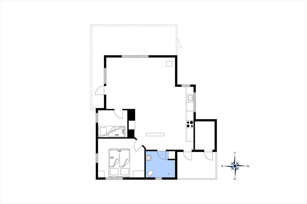 Fra indgangen via den overdækkede terrasse kommer man ind i det åbne køkken, som fungerer som husets hjerte. Her har du spisekrogen med store vinduer mod nord og sofagruppen med flot udsigt mod sydvest. Om man sidder ved spisebordet eller i sofaen, kan men flere steder se det blå Vesterhav med fiskekutterne i det fjerne. Efter en rask tur på stranden er det skønt at nyde brændeovnens varme. Der er brænde ved huset til kr. 25 pr. kurvfuld. Pengene lægges til ejer i huset. I forlængelse af terrassen ligger annekset, som også har tv.