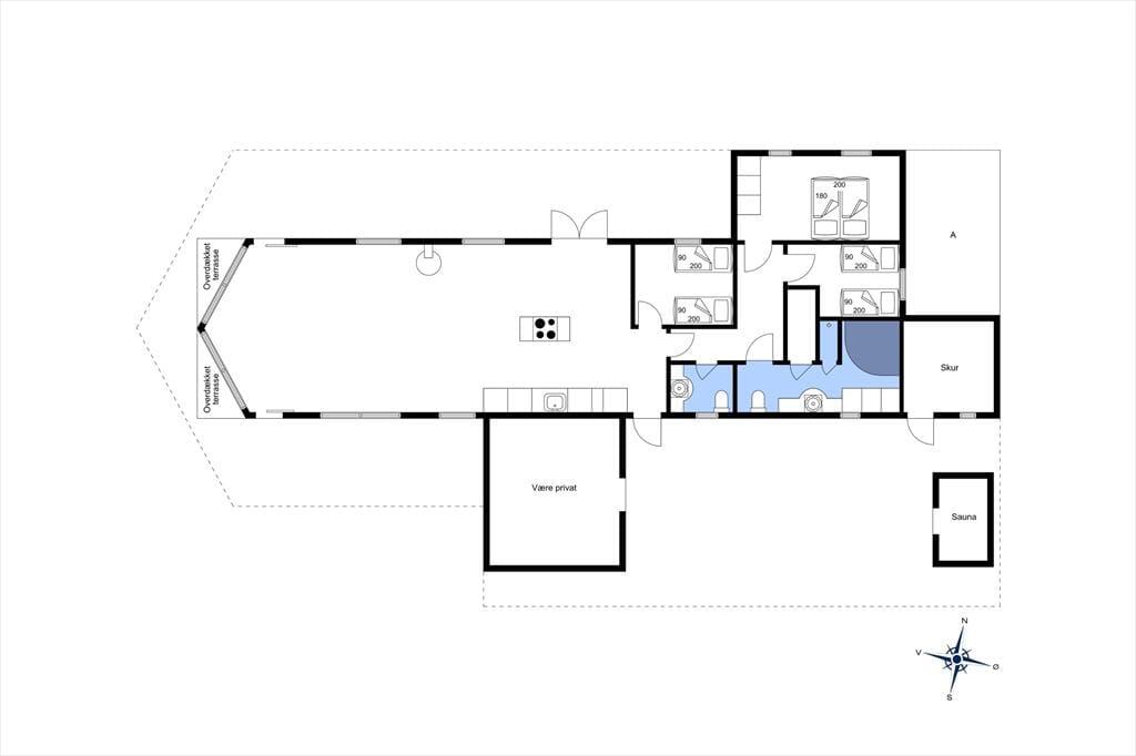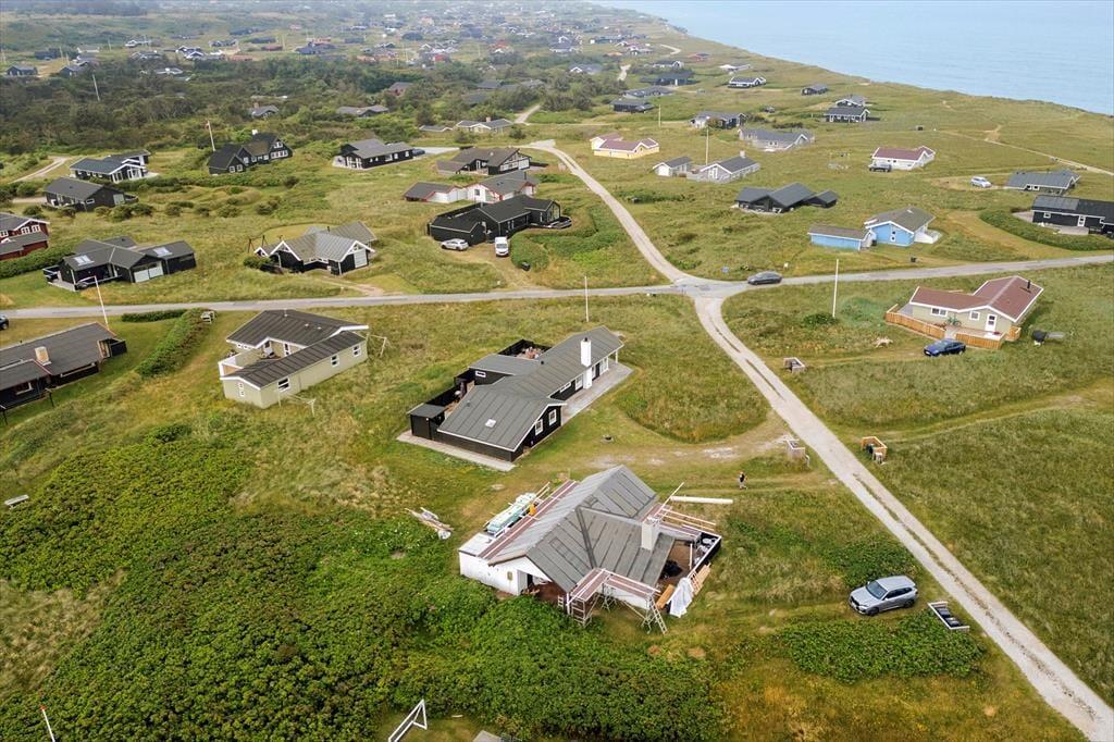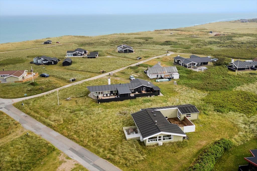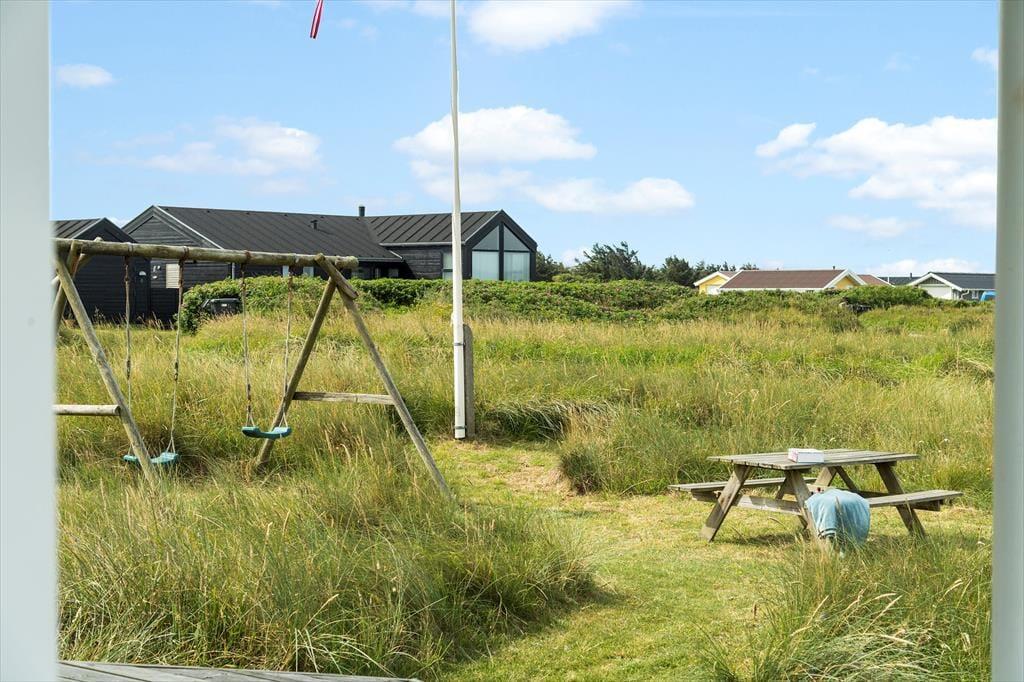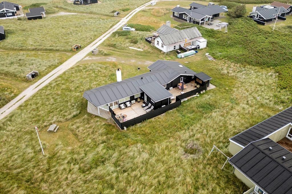 Udenfor på sommerhusets grund kan du virkelig mærke roen, der præger området. En stor terrasse indbyder til afslapning, hvor du kan nyde en god bog i solens varme stråler eller lade tankerne vandre med udsigt til den smukke natur omkring huset. Et af sommerhusets helt særlige træk er den udendørs sauna, som giver dig mulighed for at forkæle dig selv med en wellnessoplevelse under åben himmel – perfekt efter en forfriskende dag på stranden. Og netop stranden er tæt på: Du kan nemt gå ned og mærke sandet mellem tæerne eller tage en dukkert i Vesterhavet, der er lige rundt om hjørnet.