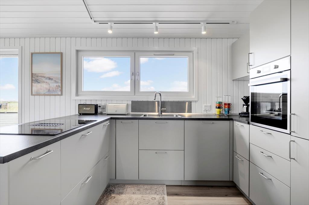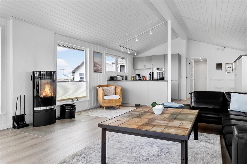 Indenfor i sommerhuset mødes du af et moderne og indbydende design, hvor der er tænkt på både funktionalitet og æstetik. Det store, åbne køkken er et af husets absolutte højdepunkter, hvor du kan forberede lækre måltider i rolige omgivelser. De smarte detaljer og lækre materialer skaber en varm og indbydende atmosfære, som gør det til et behageligt sted at tilbringe tid sammen med familien. Her er der rig plads til at samles, uanset om det drejer sig om at nyde en middag eller slappe af efter en dag med oplevelser. De tre soveværelser giver mulighed for, at op til seks personer kan bo komfortabelt, og det lyse, åbne opholdsrum byder på masser af naturligt lys.