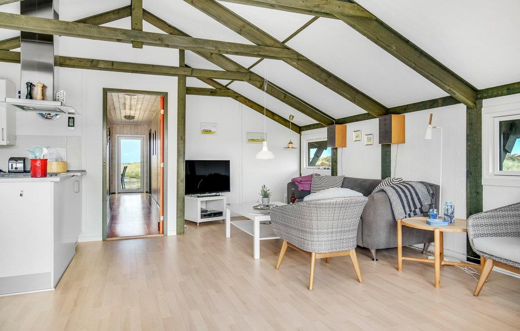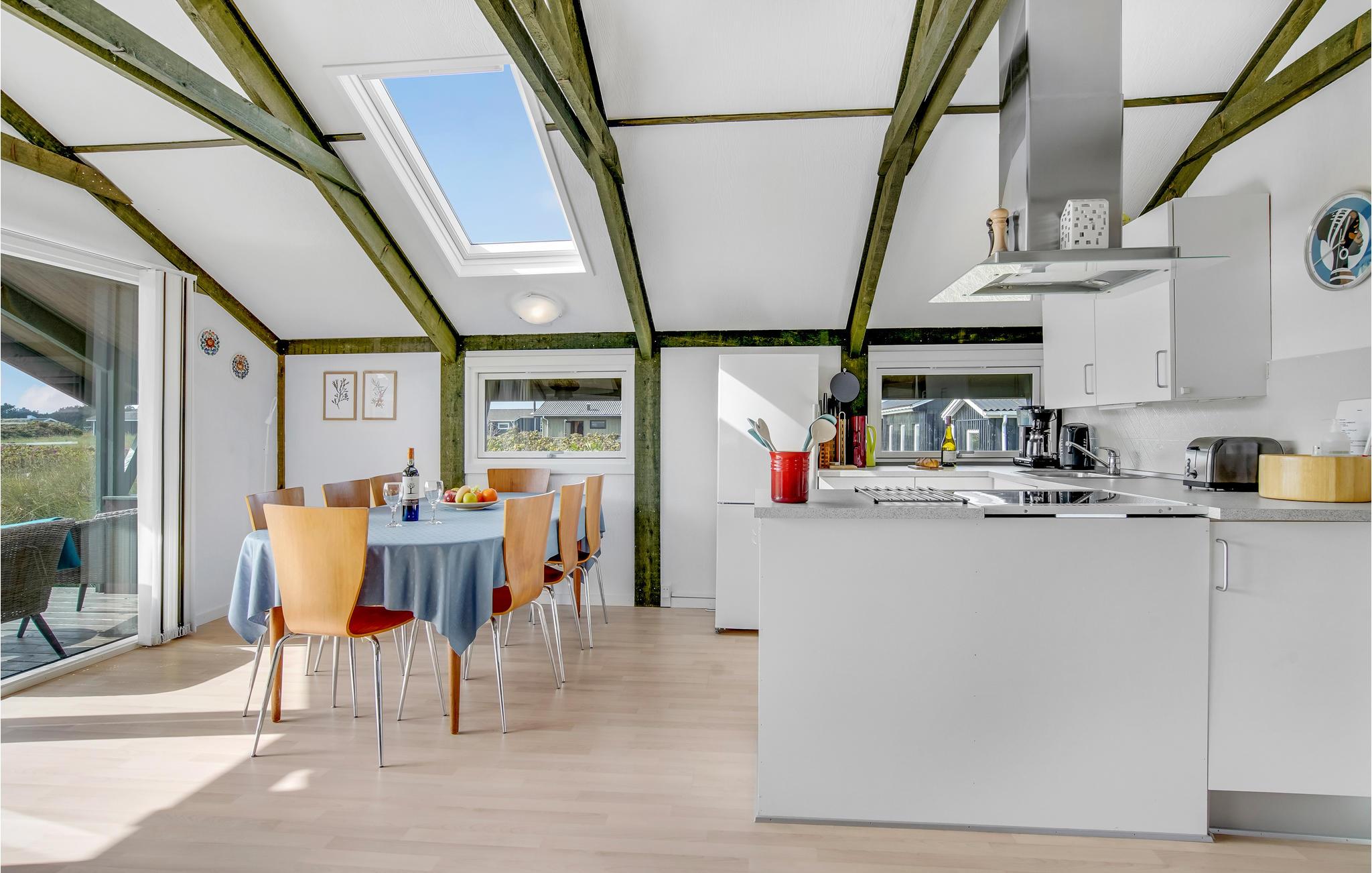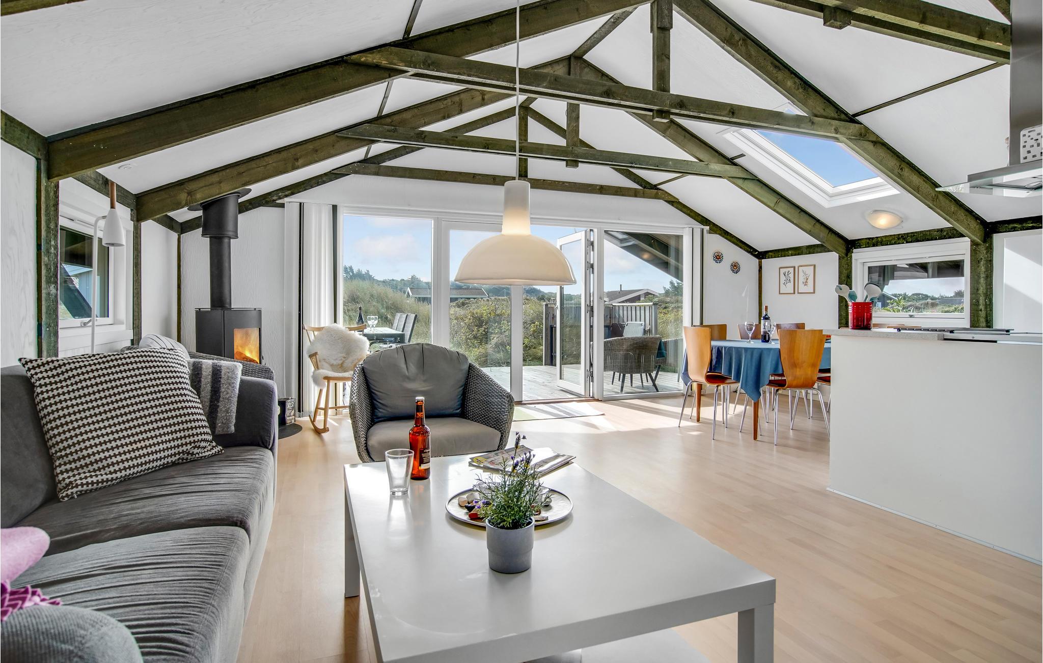 Der er kun 350 m til stranden ved Skallerup Klit fra dette sommerhus med plads til seks personer og et husdyr. Fra huset og terrassen er der en betagende udsigt over havet som både kan duftes og høres når I sidder udendørs. Nyd at lave feriemaden i det moderne køkken, hvor opvaskemaskinen sørger for det sure arbejde. I bor ikke langt fra Skallerup Klit feriecenter hvor I kan få forskellige former for wellnessbehandlinger og hvor familiens små kan slå sig løs i badelandet.