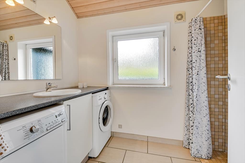 Selvom det er skønt at slappe af i den højloftede stue og benytte wellness-faciliteterne på det ene badeværelse, er det nu også fristende at rykke ud på terrassen, når vejret er lyst og lunt. Terrassemiljøet er nemlig udstyret med gode havemøbler og liggestole, og takket være den delvise overdækning får du mulighed for at finde både sol og skygge, så du kan få det, præcis som du vil have det. Den grønne, ugenerede have byder på en dejlig græsplæne samt både sandkasse og gyngestativ til børnene, og randbeplantningen skærmer hele herligheden godt af.