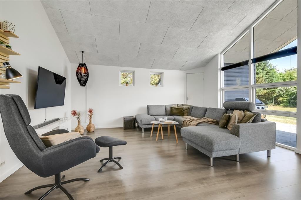 Inde i sommerhuset bliver I mødt af et lyst og åbent miljø, hvor indretningen kombinerer moderne komfort med en afslappet sommerhusstemning. De store vinduespartier inviterer lyset og naturen indenfor, og der er god plads til at samle hele familien omkring spisebordet eller i sofaen til en filmaften, et brætspil eller bare ren afslapning. Stemningen er varm og indbydende, og selv når vinden suser udenfor, er der lunt og rart indendøre. Når dagens eventyr er veloverståede, kan I forkæle jer selv med en tur i et af husets spabade eller lade dagens sidste spændinger smelte væk i saunaen. Her er der tænkt på alt det, der gør ferien ekstra behagelig.