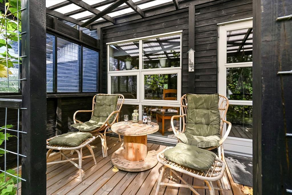 Ude venter en skøn, indhegnet have, hvor fri leg og rolige stunder går hånd i hånd. Her kan børnene lege på græsplænen, hoppe i sandkassen eller udforske de små frugttræer og køkkenhaven, mens shelteret lokker til hyggelige aftener med stjernekiggeri. Terrassen er det perfekte sted til middage eller afslapning med dagens avis eller en god bog, og der er god plads til, at hundene kan løbe frit rundt uden bekymring. Haven er skabt til både leg og afslapning, og der er rig mulighed for at lade ferien udfolde sig i et roligt tempo midt i naturens lyde og duftene fra blomster og frugttræer.